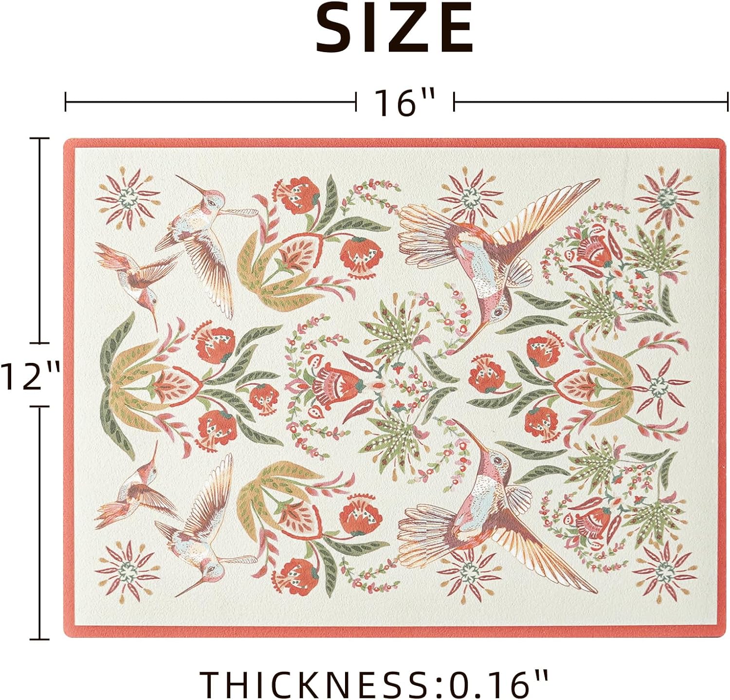 Dish Drying Mat, Absorbent Coffee Mat Rubber Backed, Soft Silicone Dish Drying Mat for Kitchen Counter or Sink for Kitchen Bathroom Coffee Bar (Birds and Flowers, 12 x 16 Inches)