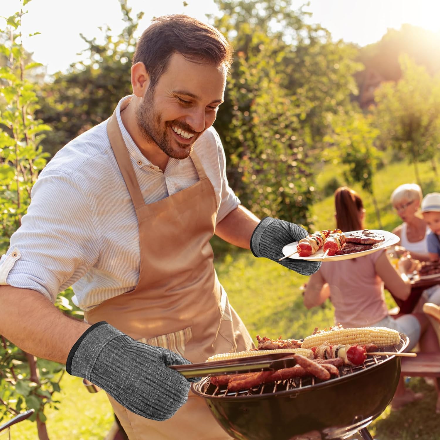 - HEAT-RESISTANT UP TO 500 DEGREES: Thanks to the nice workmanship, the heat resistant oven mitts for kitchen are very comfortable to wear. Combination of silicone and cotton for maximum flexibility and heat protection, soft and comfortable lining. The oven mitts set protects your hands from heat (up to 500°F).
