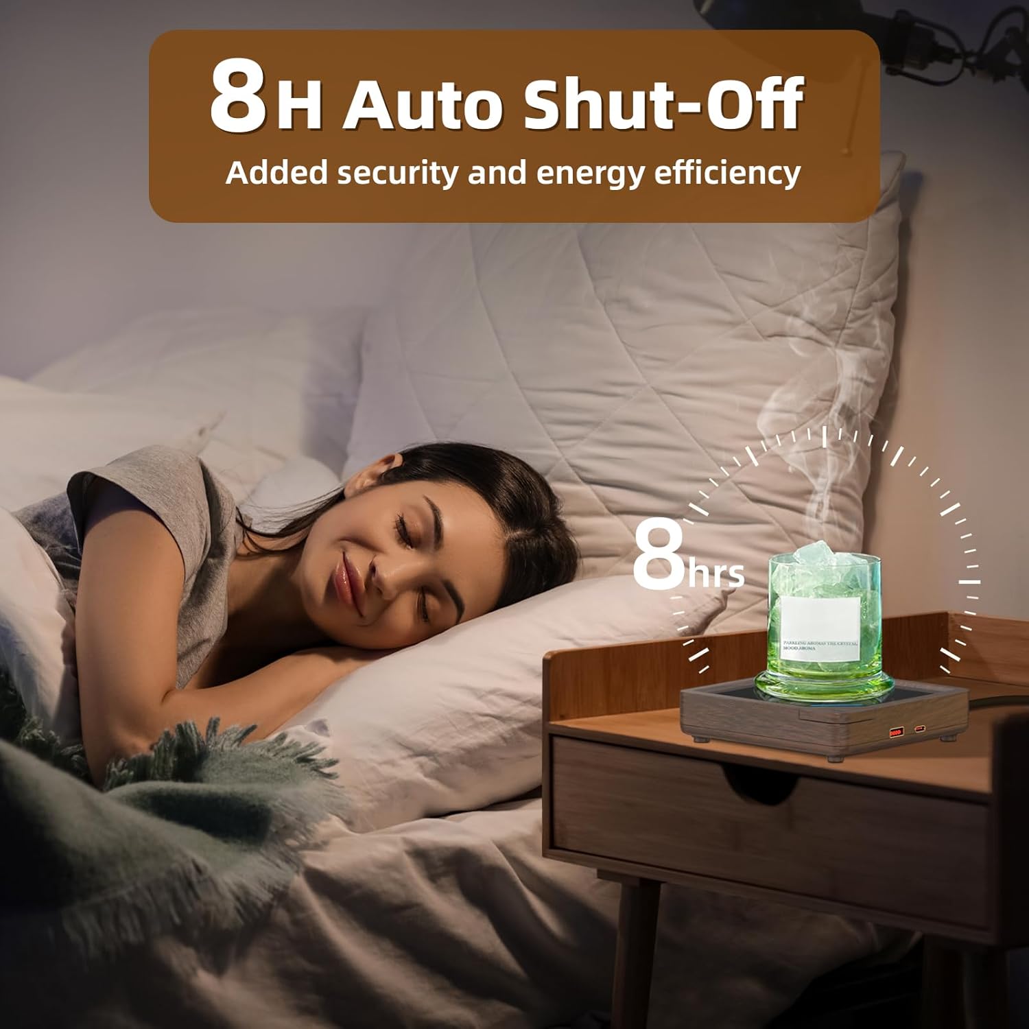 Coffee Mug Warmer with 2 USB Charging Ports: Auto Shut-Off Candle Wax Warmer - Heated Beverage Coffee Accessories for Home Office Desk - U1 Wood