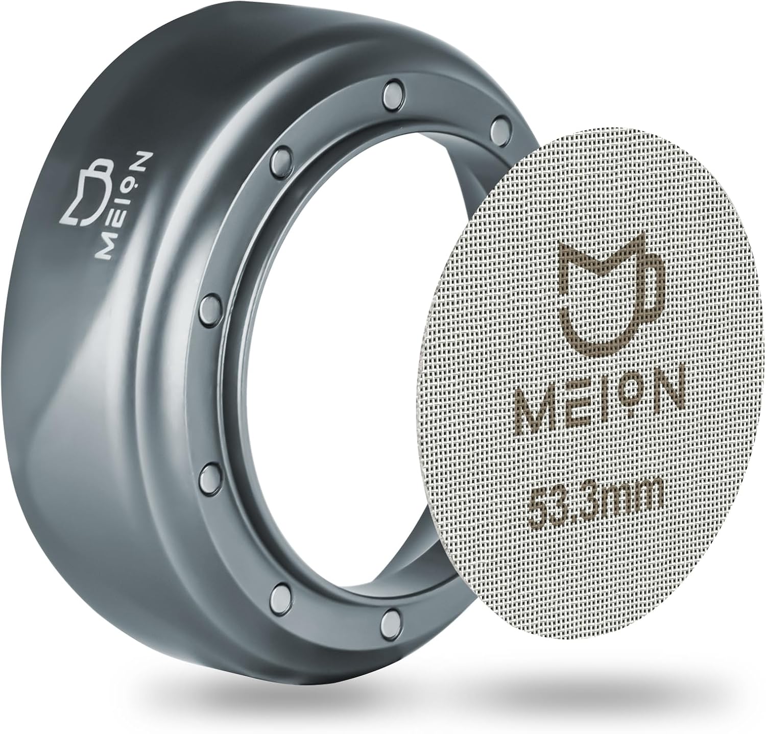 - 【Quality Espresso Tools, Espresso Accessories】 MEION 54mm dosing funnel and 53.3mm espresso puck screen for 54mm portafilters. Simply place it on the portafilter basket and take your espresso to the next level! Please Note: Our dosing funnel does NOT compatible with BREVILLE BARISTA TOUCH, BREVILLE PRO, Barista Express grinder.