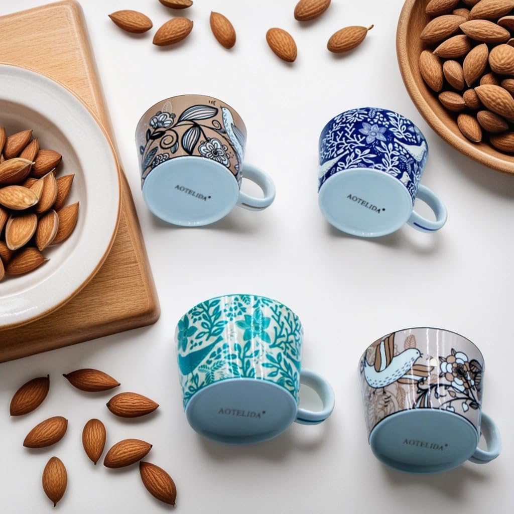 - Art Pattern Print: Our mugs have a unique, colorful print on the outside of the mugs and a solid color inside. And with a 4-piece set in an elegant shape, mix-match design, and vibrant colors, it can be mixed and matched with AOTELIDA teapot, cup, bowl, and plate sets