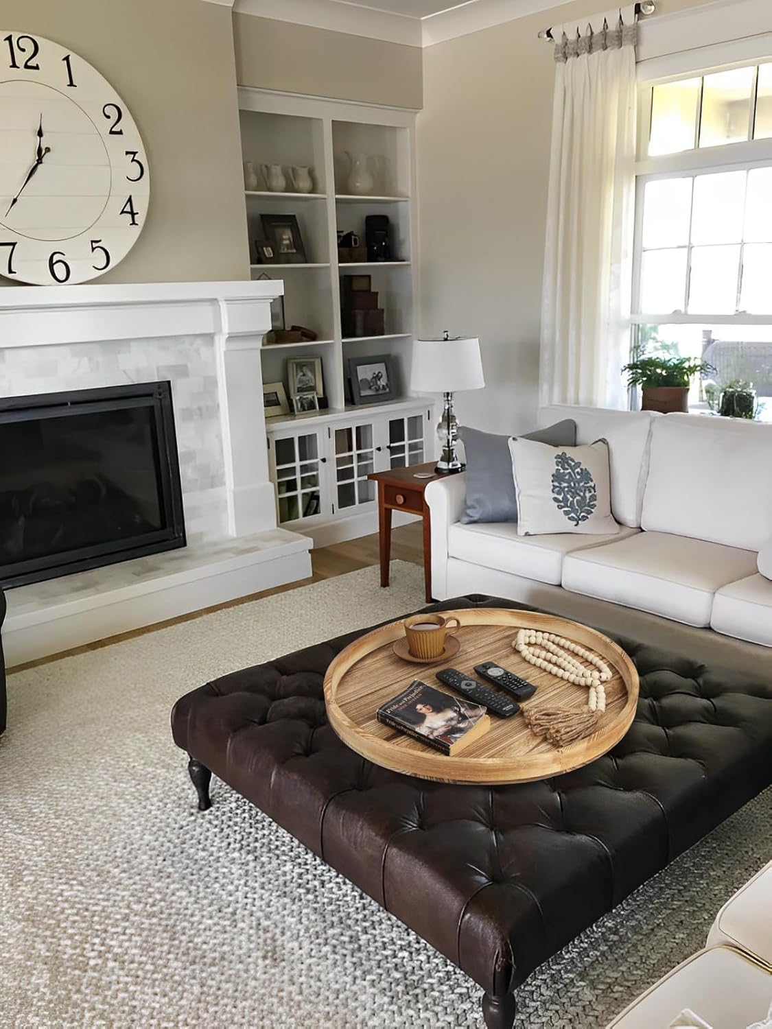 Round Ottoman Table Tray Round-24 - Rustic Wooden Serving Tray for Farmhouse Decorative Oversized Coffee Table Trays Living Room Kitchen Counter Breakfast Nature