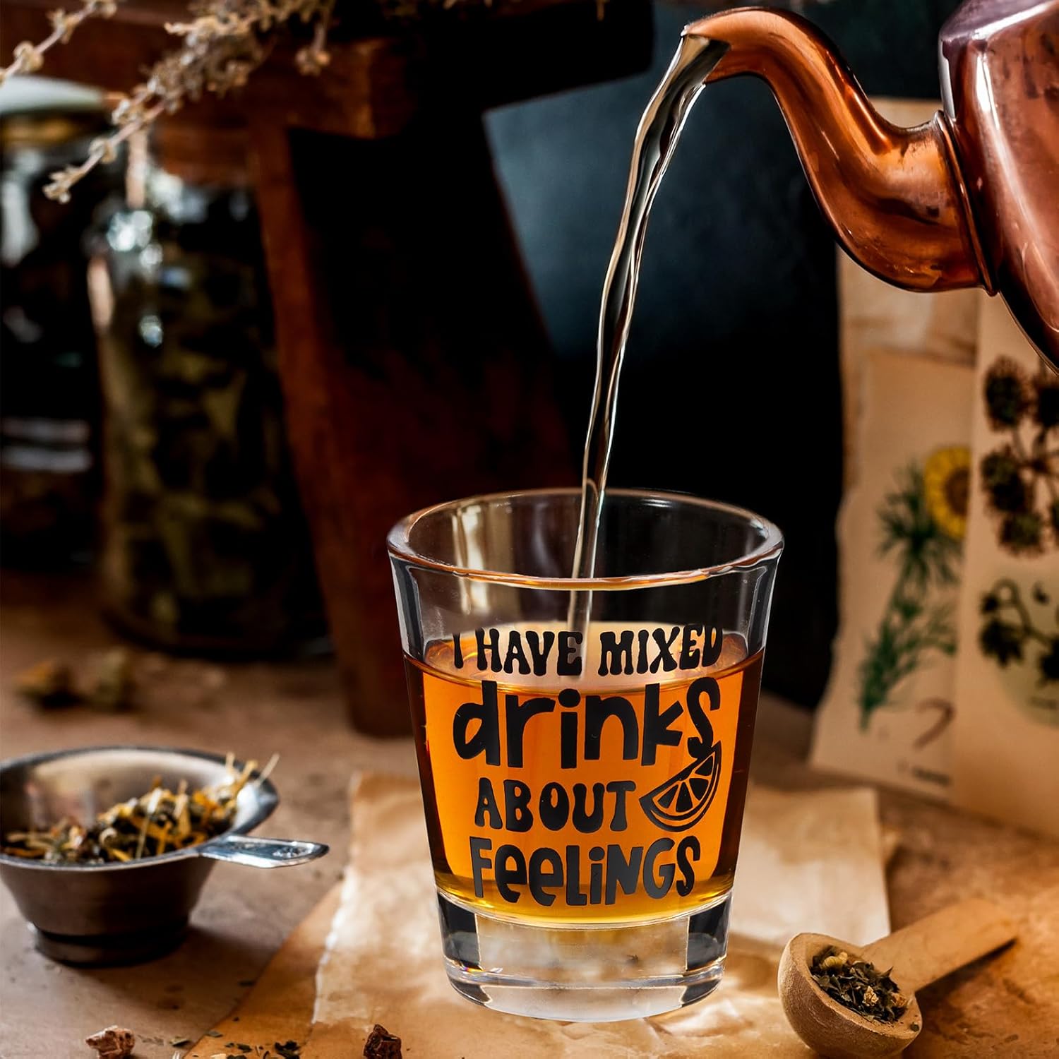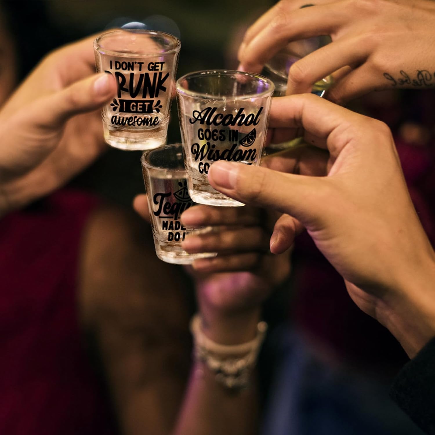 Kolewo4ever 24 Pieces Funny Friends Shot Glasses Funny Friends Shot Glasses Clear Shot Glass Cups with Heavy Base for Adult Small Glass Shot Cups 1.75 oz Shot Glass for Best Friends (Style-2)
