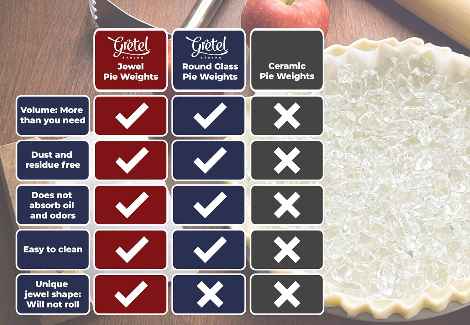 Jewel Glass Pie Weights for Baking | Will Not Roll Away | Better Than Ceramic | Dust-Free Borosilicate Glass | Large Quantity 2.5 lbs | Drawstring Storage Bag | Essential baking tools and accessories