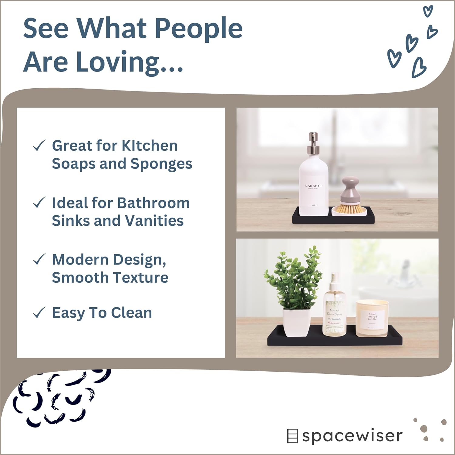 - Useful and Versatile - These black rectangle trays are an ideal black vanity tray or black soap dispenser tray. They’re the perfect black tray for bathroom areas, sponge holder for kitchen sink areas, and sink tray for bathrooms.