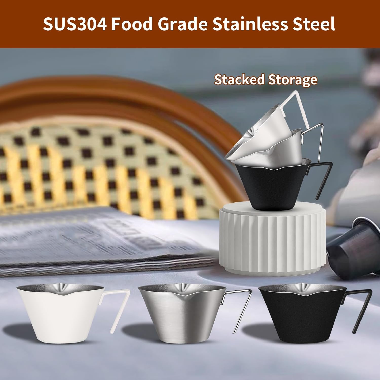 - 【Premium Material】: The stainless steel espresso measuring cup are crafted from high-quality 304 stainless steel, ensuring exceptional durability. Espresso measuring cup is easy to clean by hand or in the dishwasher, maintaining its shine and making it perfect for everyday coffee use.