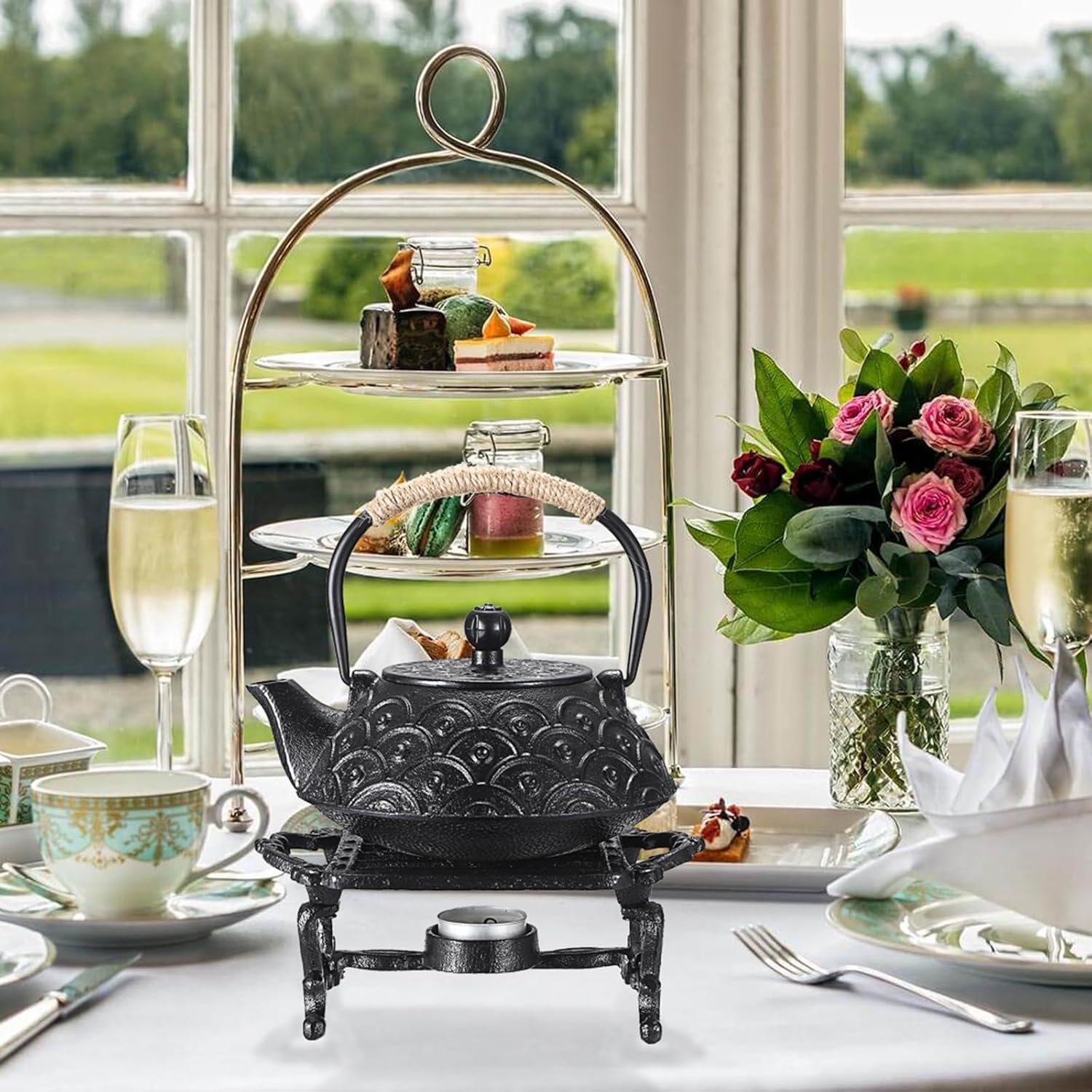 - 【Sturdy&Solid Material】: Tea warmers for party are made premium cast iron material with professional craftsmanship which are sturdy,solid,rustable,dust resistance and wear resistance for long time. There are 4 curved tripods at the bottom,which are stable enough on any tabletop without worrying about shaking and spilling drinks.