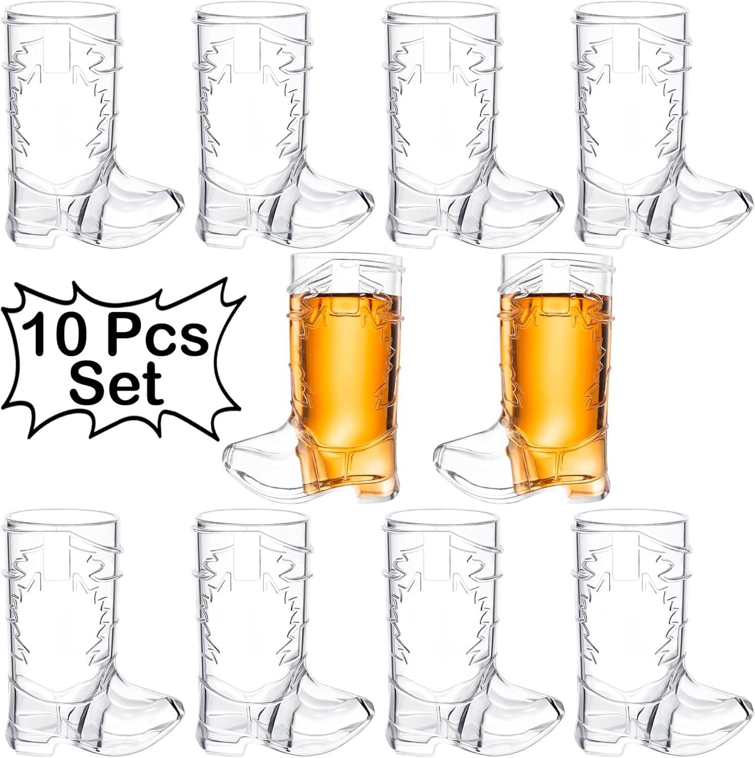 2 Ounce Cowboy Boot Shot Glasses | 10pcs Pack Double Ounce Plastic Shot Glass | Western Boot Shot Glasses for Parties | Bachelor Bachelorette Cowboy Parties | 4th of July Shot Glasses