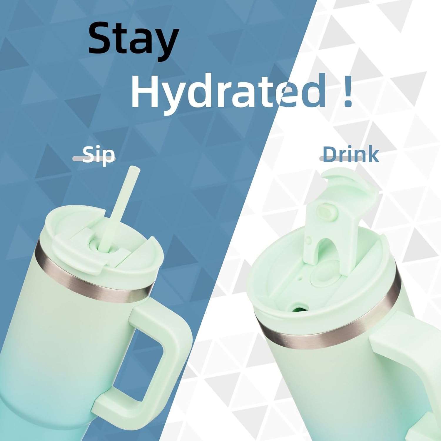 40 oz Tumbler with Handle and 2 Straws,2 in 1 Lid Insulated Water Bottle Stainless Steel Travel Coffee Mug,Mint