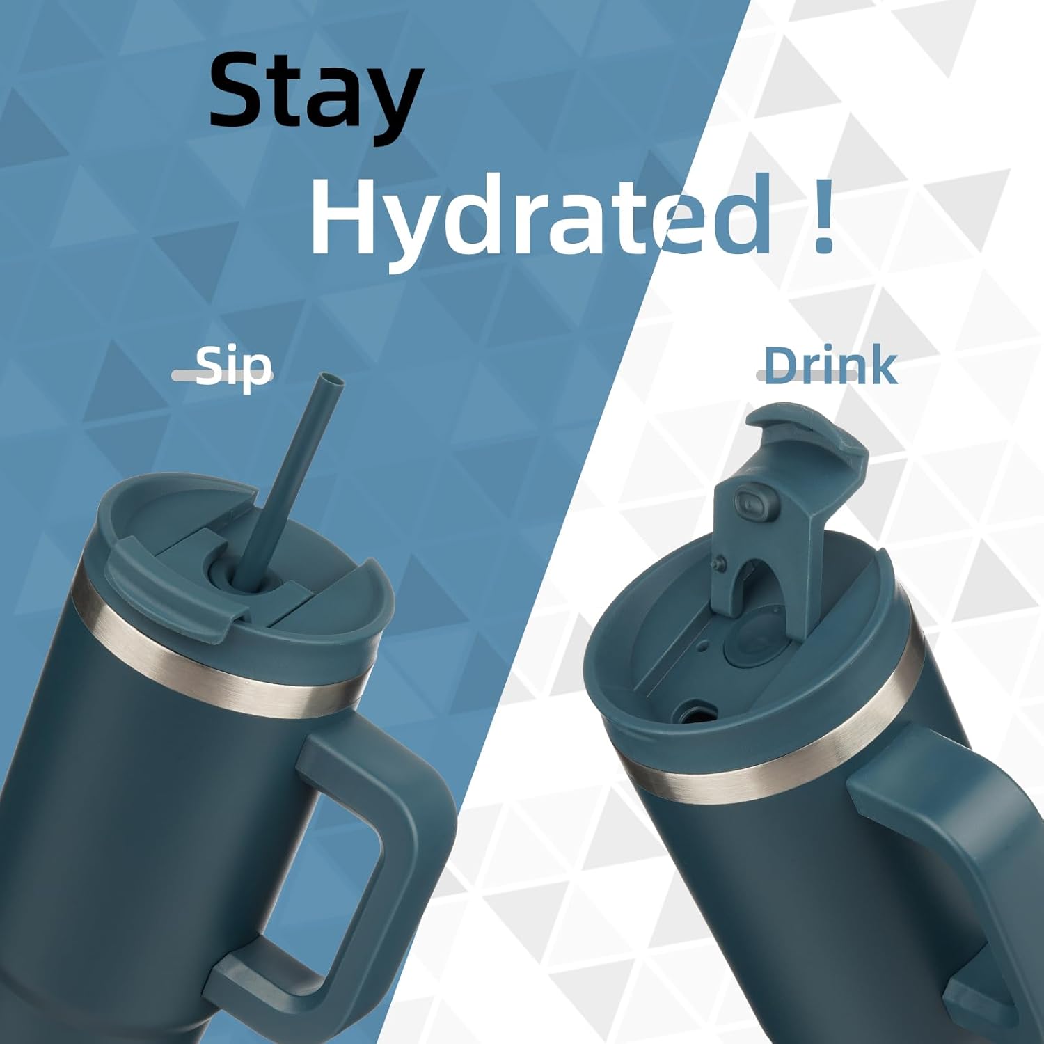40 oz Tumbler with Handle and 2 Straws,2 in 1 Lid Insulated Water Bottle Stainless Steel Travel Coffee Mug,Navy blue
