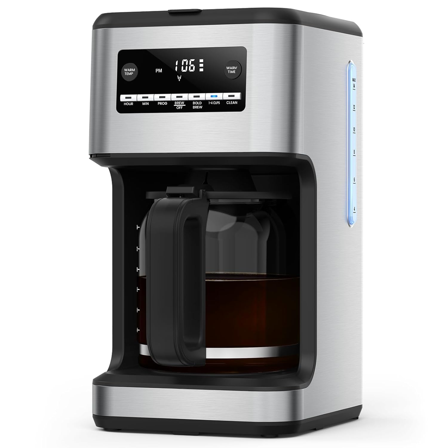 - Anti-Drip Design: Our anti-drip design ensures that the coffee stops extracting automatically when you remove the coffee pot. No more worries about spills or burns! The 1-4 Cups setting allows you to enjoy a cup of coffee at any time, without waiting for the entire brewing process to finish. And with the Bold brew mode, you can adjust the strength of your coffee to match your taste perfectly