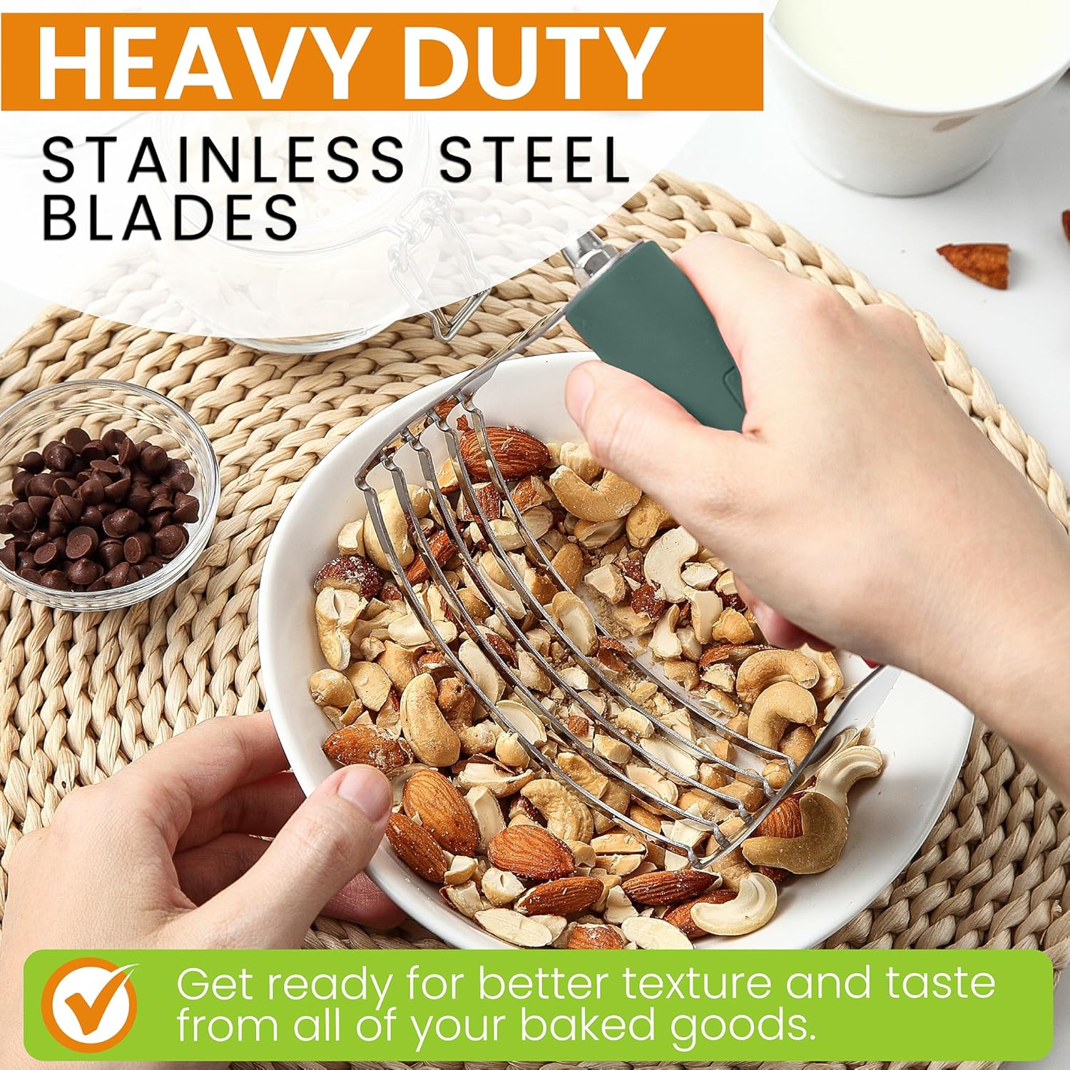 Spring Chef Large Dough Blender For Baking, Manual Dough Cutter Tool, Stainless Steel Puff Pastry Cutter Tool with Sharp Blades, Dishwasher Safe Pastry Blender for Easy Mixing - Pine Green