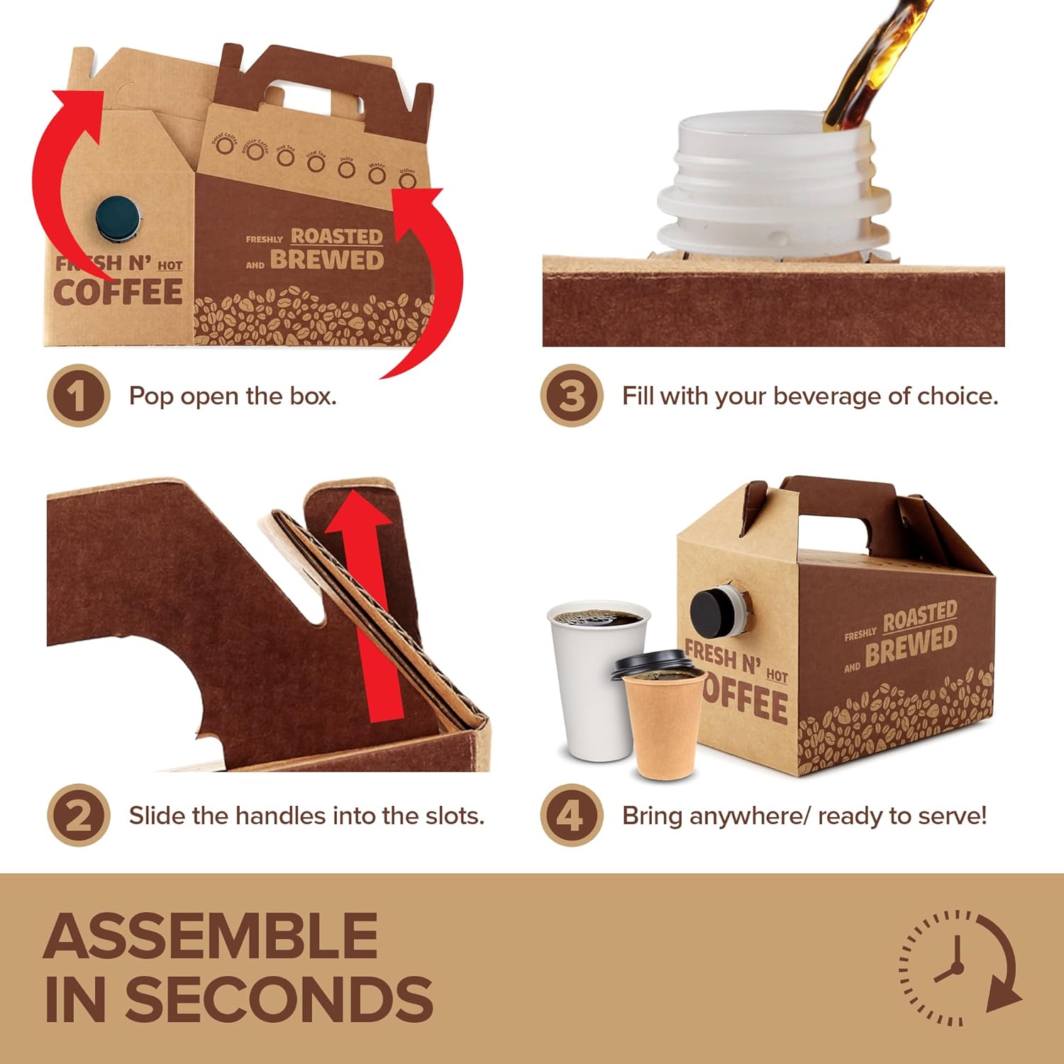 Stock Your Home (5 Pack) 96 oz Disposable Coffee Box Dispensers, Insulated Hot Cold Bulk Beverage Server Carafe, Coffee Carrier with Handle Take Out Containers, Cardboard Traveler To Go Boxes