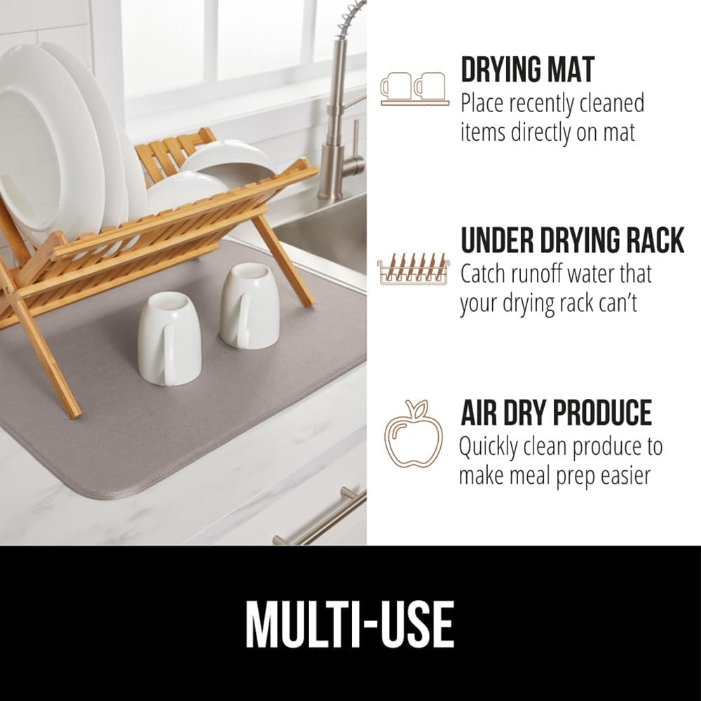 GORILLA GRIP Ultra Water Absorbent Microfiber Dish Drying Mat, Quick Dry Thick Mesh, Slip Resistant Pad for Sink Dishes or Under Rack, Kitchen Counter Accessories, 16x18, Machine Wash Mats, Almond