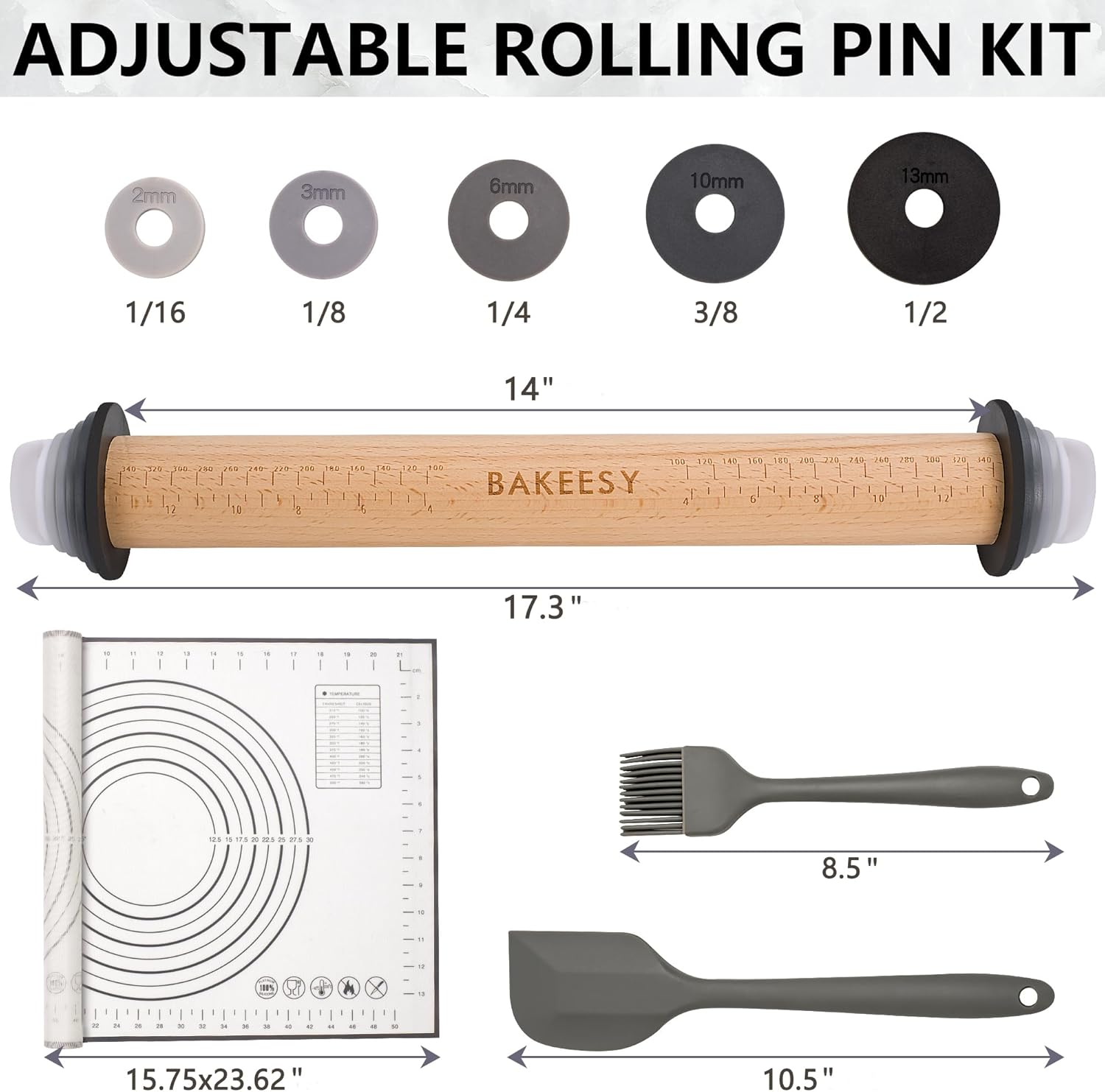 - CREATIVITY WITHOUT LIMITS Whether you're a professional or an enthusiastic home baker, this set provides everything you need. The included silicone baking mat measuring 15.75x23.62 inch not only serves as convenient parchment paper but also guides you in rolling out dough
