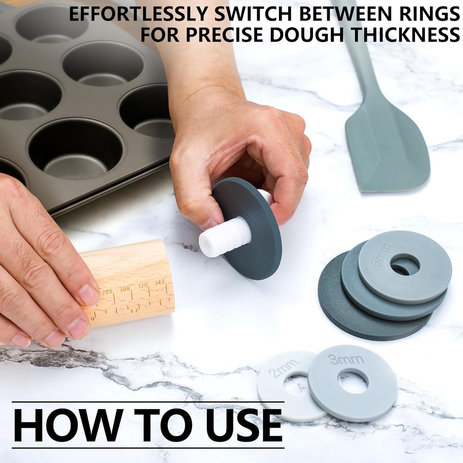 - ADJUSTABLE & PRECISE Our 14' long roller comes with 5 colored plastic precision rings (1/16", 1/8", 1/4", 3/8", and 1/2"inch) allowing you to effortlessly achieve the perfect measured thickness that rolls all your home made creations.