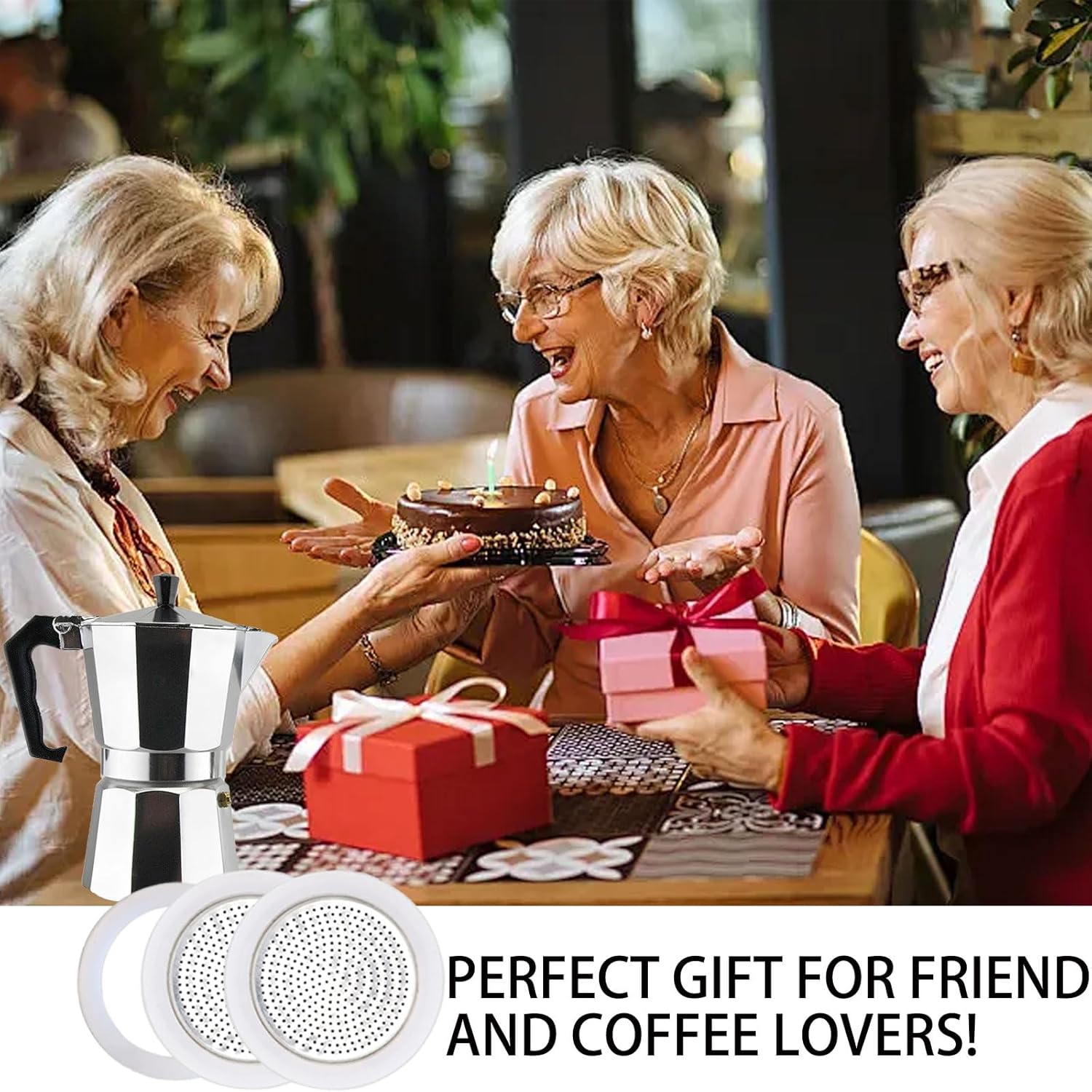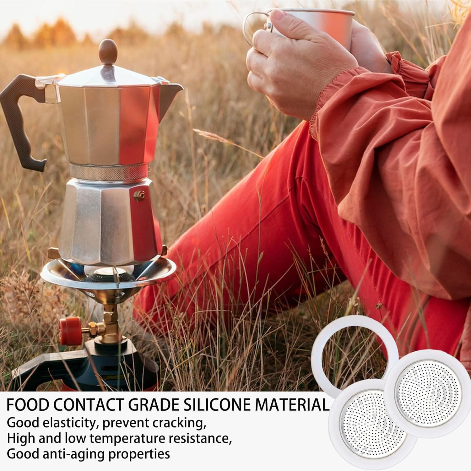 2 Pcs Filter with 3 Pcs Silicone Gasket Seals for 6 Cup Stovetop Espresso Coffee Maker Replacement Parts for DITOSH Aluminium Moka Pot