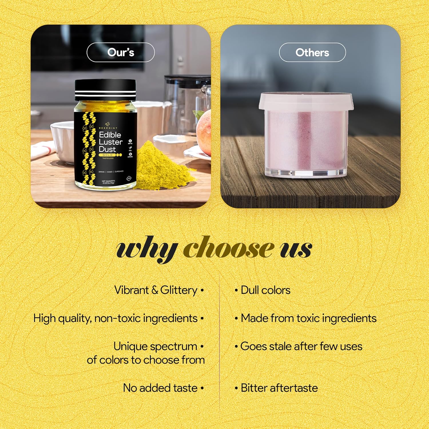 - Effortless Sparkle: Achieve vibrant metallic food glitter edible dust on cakes, desserts, and drinks with our easy-to-use luster powder dust, perfect for both beginners and professionals