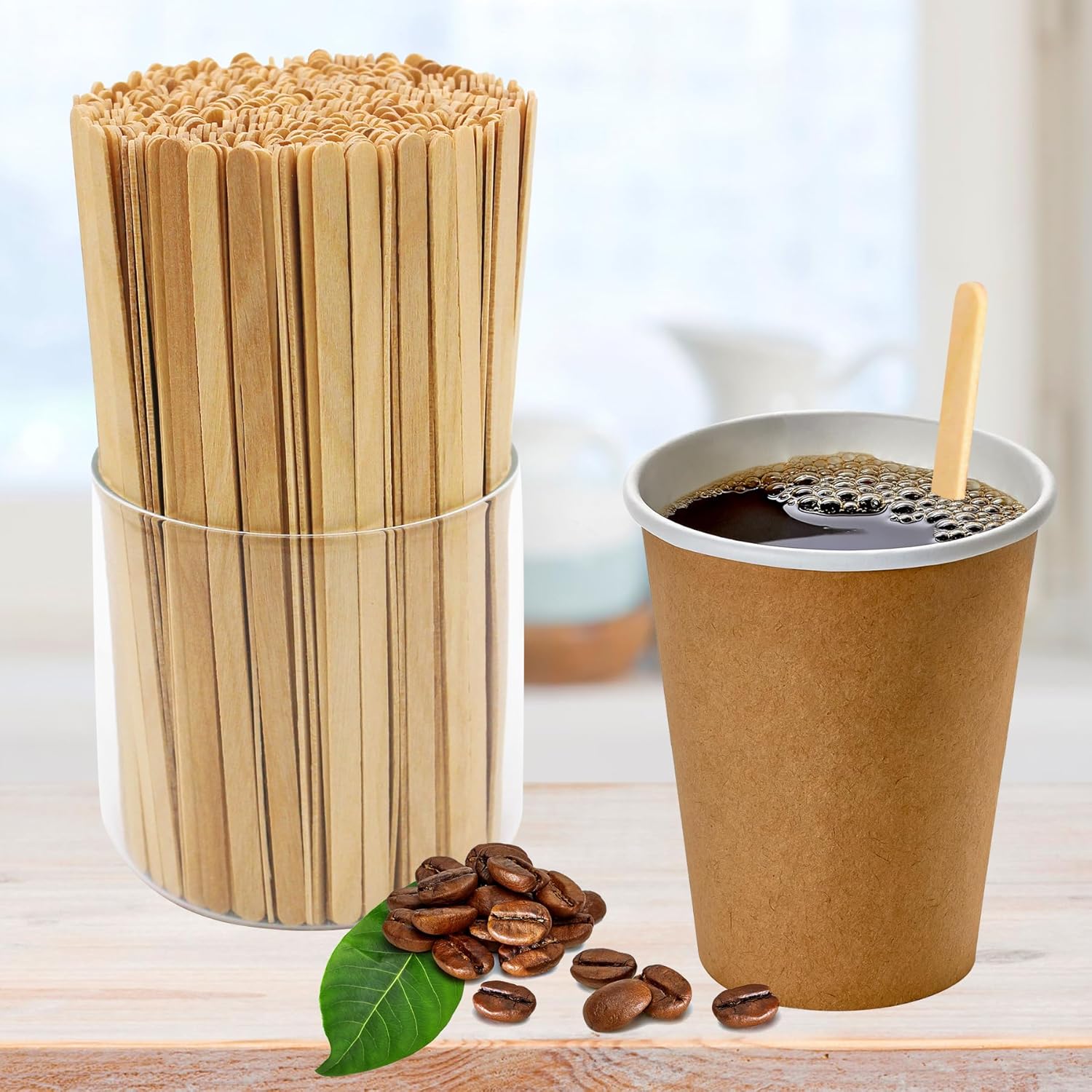 - [VALUE PACK WOOD COFFEE STIRRERS] -1000pcs 5.5inch 140mm)x(5mm) Wooden coffee stirrers with A+level Smooth rounded edges. Nice to stock such 1000-pack disposable wooden stir sticks for coffee or swizze drink at nice price.