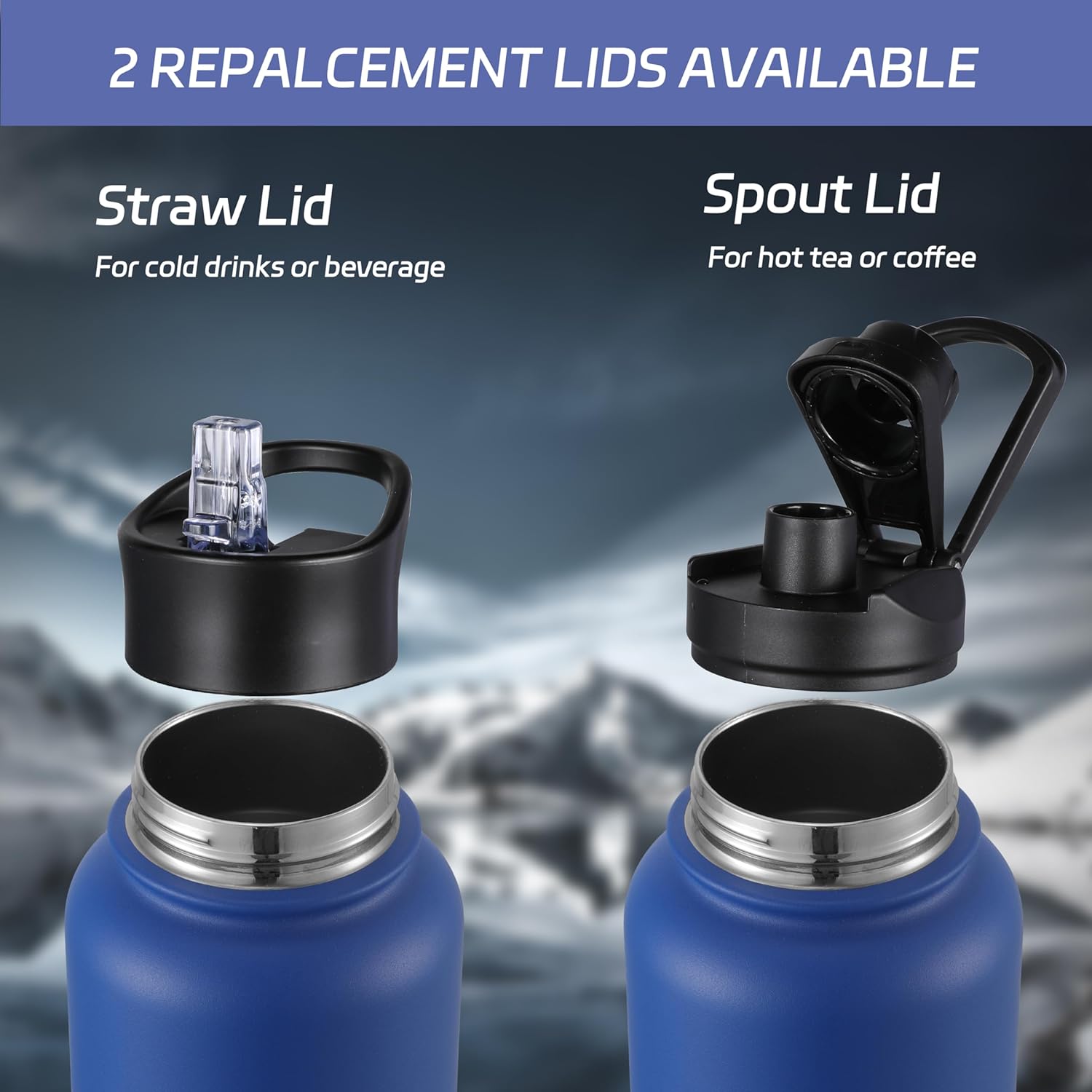 HASLE OUTFITTERS 32 oz Insulated Water Bottle Stainless Steel Double Walled Vacuum Sports Water Bottle with 2 Lids (Straw and Spout Lid) for Gym Camping Hiking(Royal Blue,1)