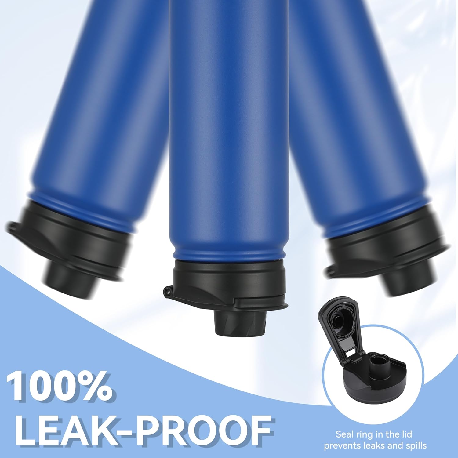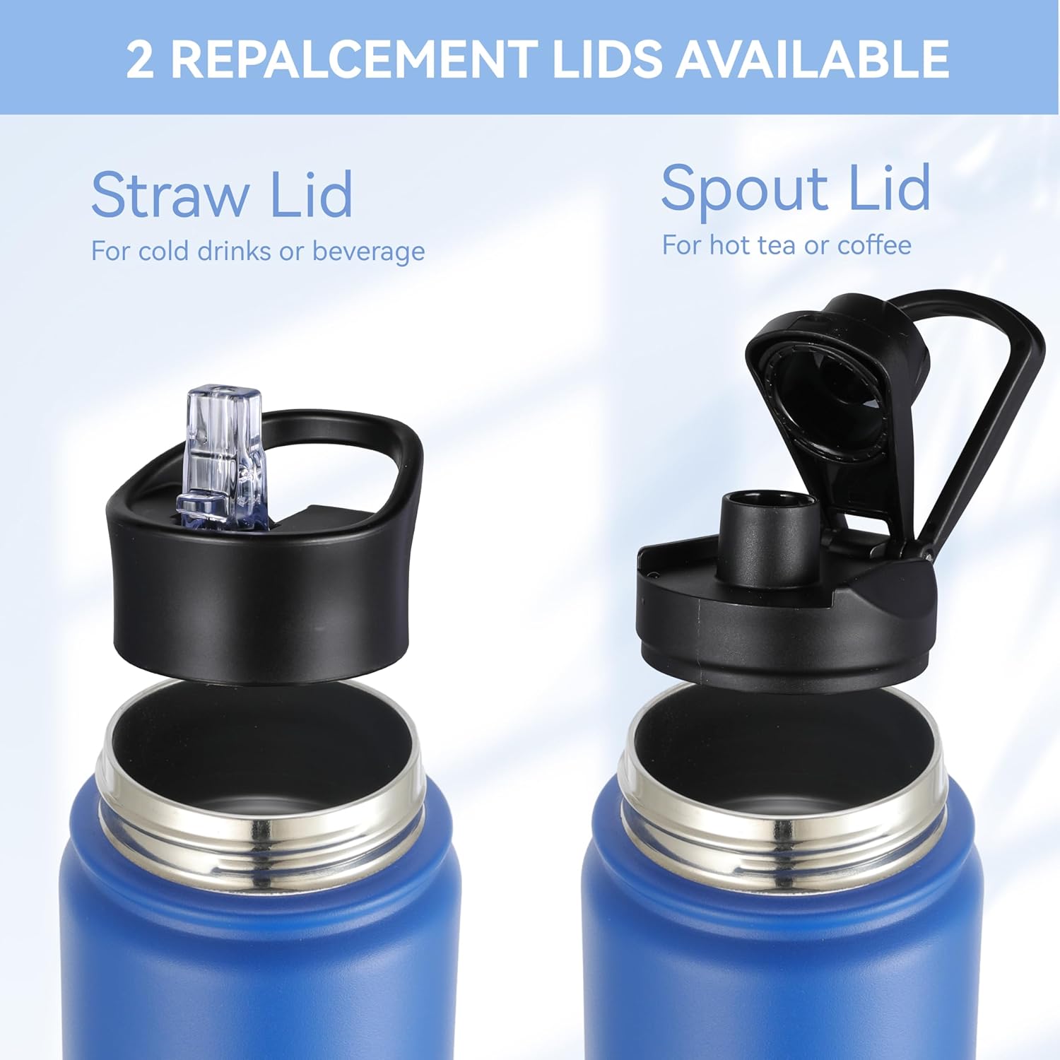 - 【Spout Lid & Straw Lid】 This water bottle comes with 2 lids: an innovative leak-proof spout lid and a newly improved straw lid that has been enhanced for better flow. Easily fill your water bottle with ice and clean it through the wide mouth opening. Both allow easy one-handed or hands free sipping, they are designed for you to drink anytime, anywhere.