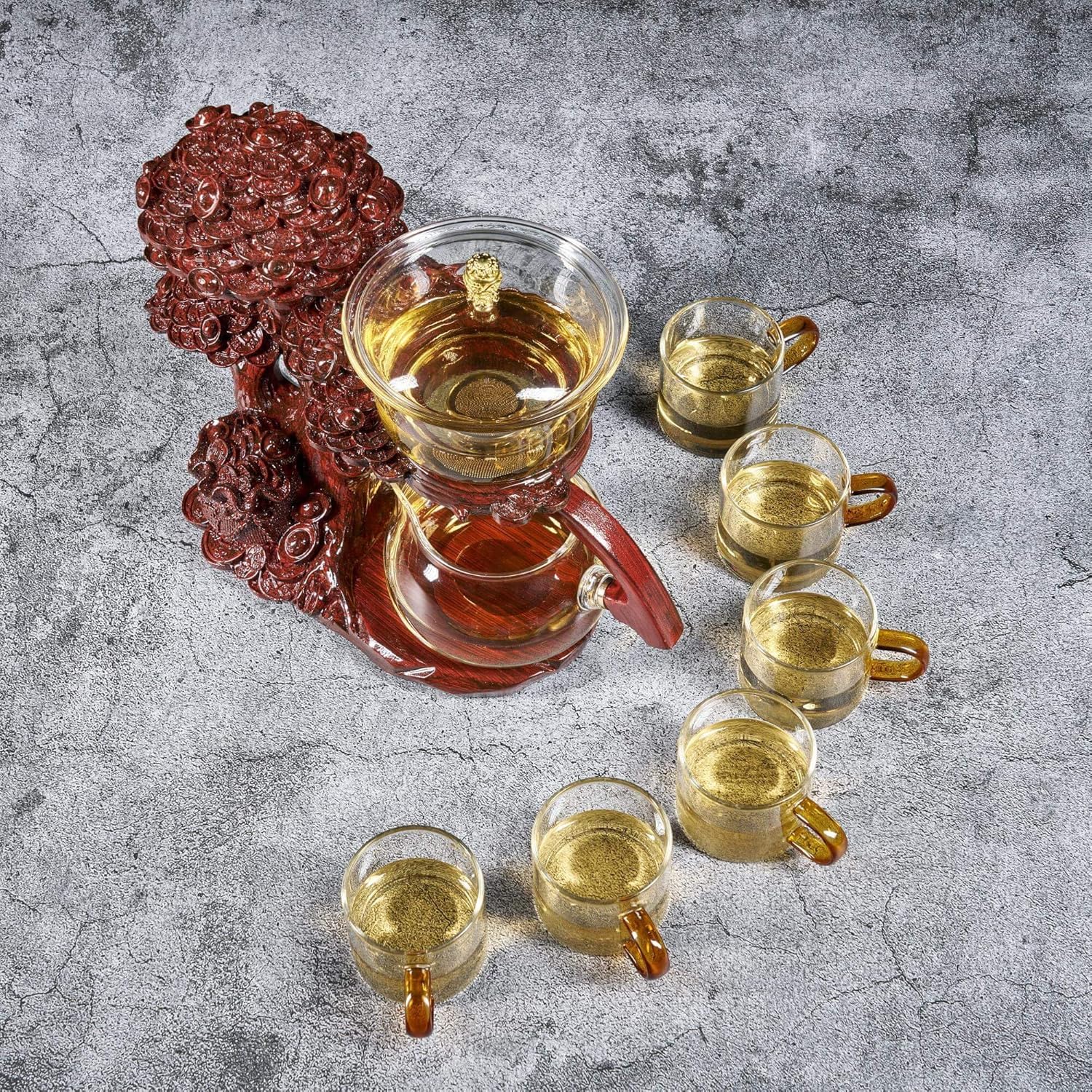 Glass Teapot Set with Infuser Semi Automatic Tea Set Magic Teapot (Tree - red)