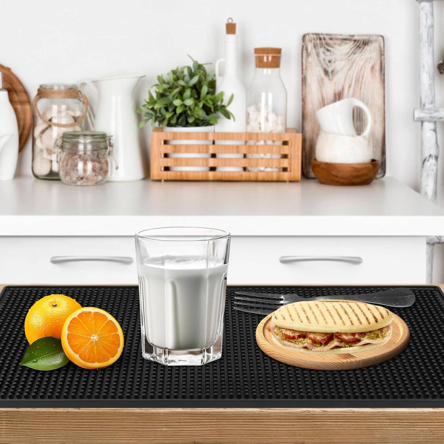 Extra Large (28 inch by 16 inch) Thick Rubber Service Bar Mat for Home Kitchen Counter Mat, Bartender Bar Mat, Dish Drying Mat, 2 Packs Black