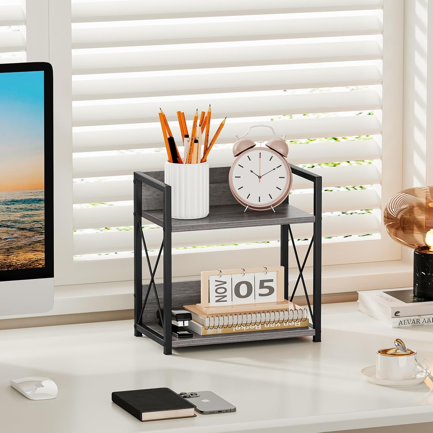 Giikin Countertop Shelf Organizer, 2 Tier Coffee Organizer for Desktop, Grey Counter Shelf Spice Rack for Kitchen (Grey, M)