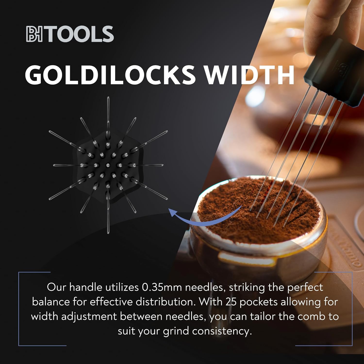 - IMPROVES CONSISTENCY: Our take on the Weiss Distribution Technique, one of the longest-standing expression distribution methods. The BH Tools Comb allows you to fine-tune the needle spacing for precise coffee distribution to suit your grind.