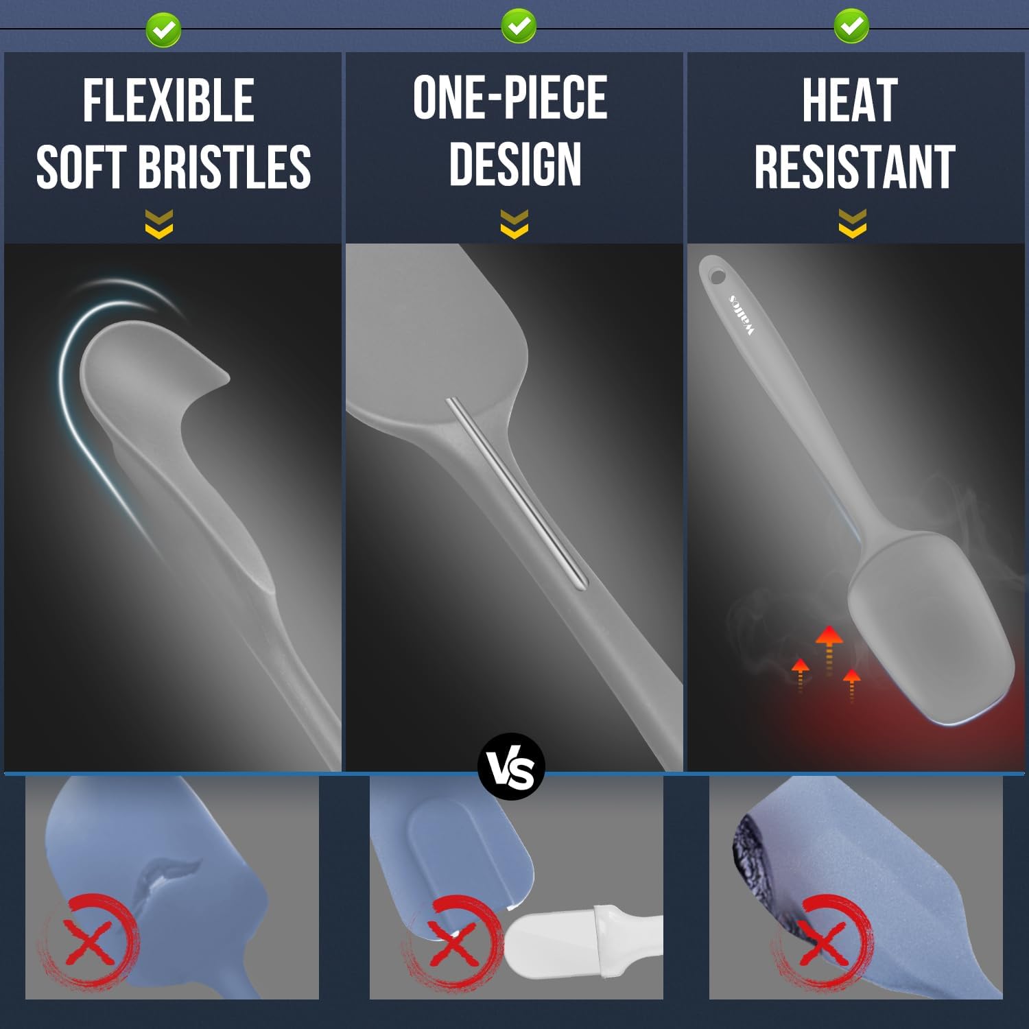 - 【An Internal Stainless Steel Core Technology】 The strong stainless steel core makes the silicone spatulas won't break easy like cheap plastic spatula. WALFOS baking spatula can hold up to the demanding use of home cooks, continue to perform day after day.