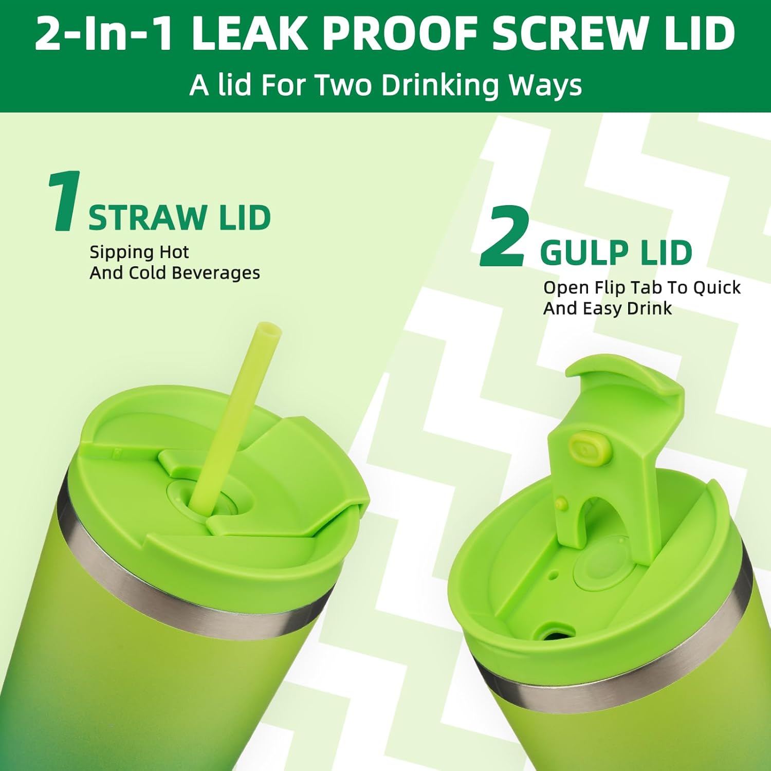 - BPA-Free Threaded Lids: The 2 In 1 Screw-on Lid, Not Only Can You Open The Lid And Drink Directly From The Flip Lid, But Also Can Insert A Straw In The Middle, Choose Your Own Way For Drinking