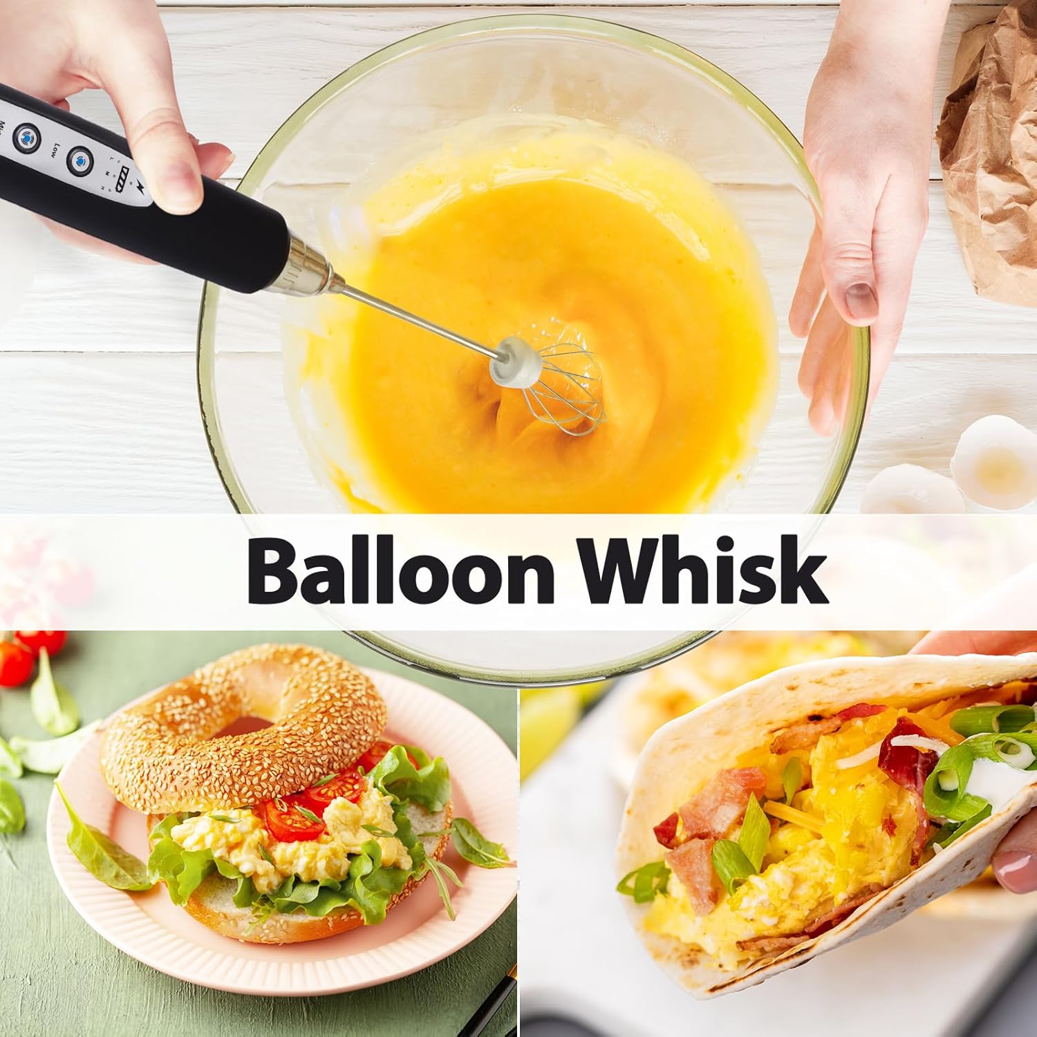 - 3 Whisks and 3 Speed Adjustable Frother : The matcha frother comes with 3 adjustable whisking speeds. SLOW SPEED for stirring egg yolks, powder drinks. MEDIUM SPEED for making jam, matcha tea. HIGH SPEED for milk or coffee froth, fluffy whipped cream, egg whites. Versatile 3 replaceable whisks: SPRING WHISK for creating milk and coffee froth, to make delicious drinks; BALLOON WHISK for mixing egg and whipping cream; HOOK WHISK for blending powders, making jam