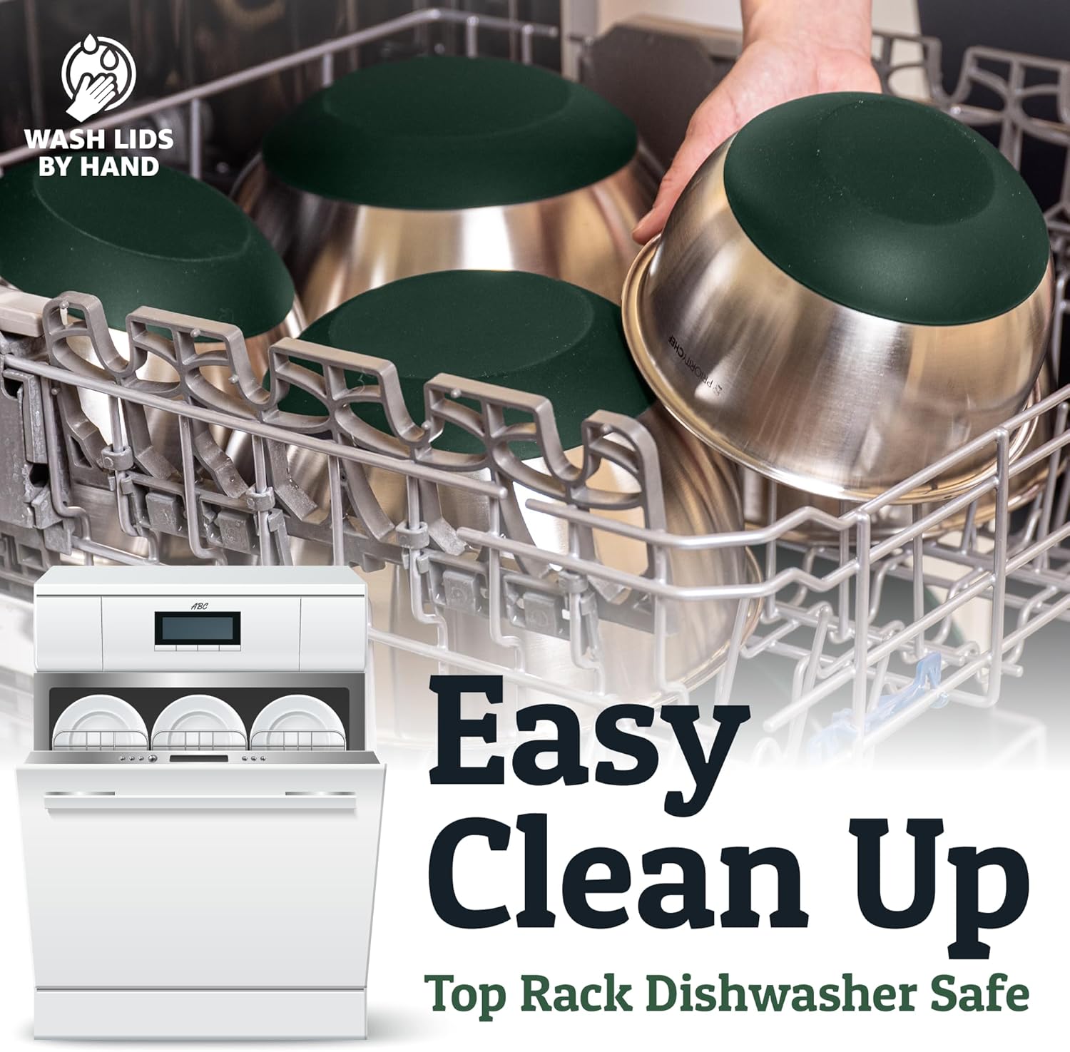 Priority Chef Stainless Steel Mixing Bowls with Lids Set, 3 Grater Attachments, Airtight Lids, Non-Slip Silicone Base Mixing Bowl Set, Large Prep Metal Mixing Bowls for Kitchen, Green
