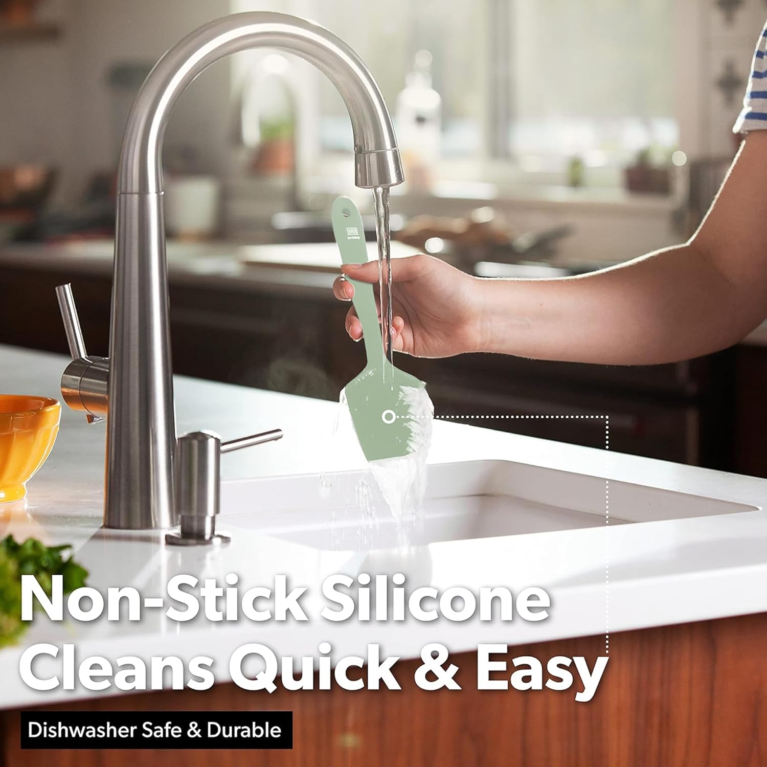 - SEAMLESS ONE-PIECE DESIGN - Unlike other cheap underperforming spatulas, our Large Silicone Spatula is perfect for stirring, scraping, and folding a wide variety of foods. Our innovative seamless design has no seams or cracks to trap food and grime, which means your large spatula will clean up easy and keep your food safe.