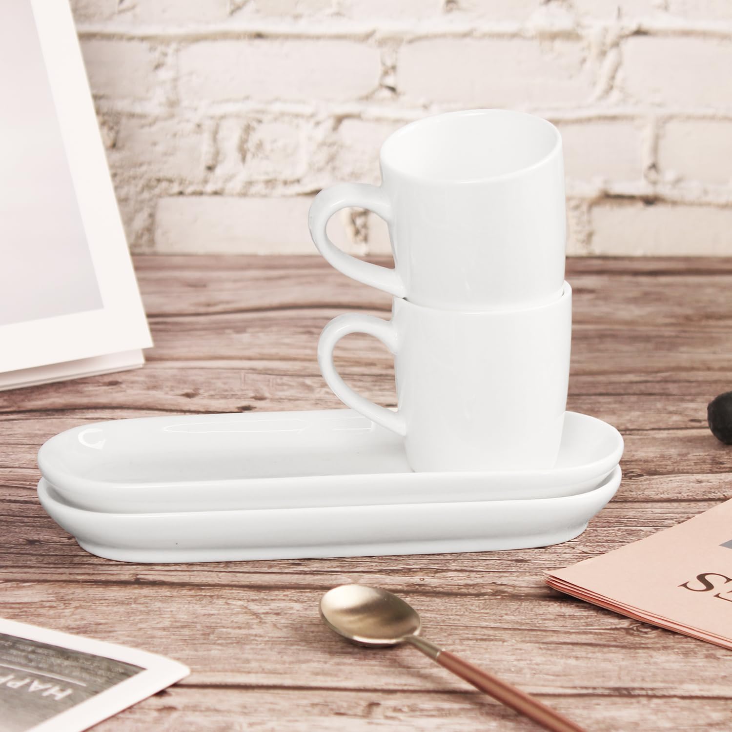 Italian Style Espresso Cup Set of 4 | Porcelain Demi Tasse Cups and Saucers, 3 oz