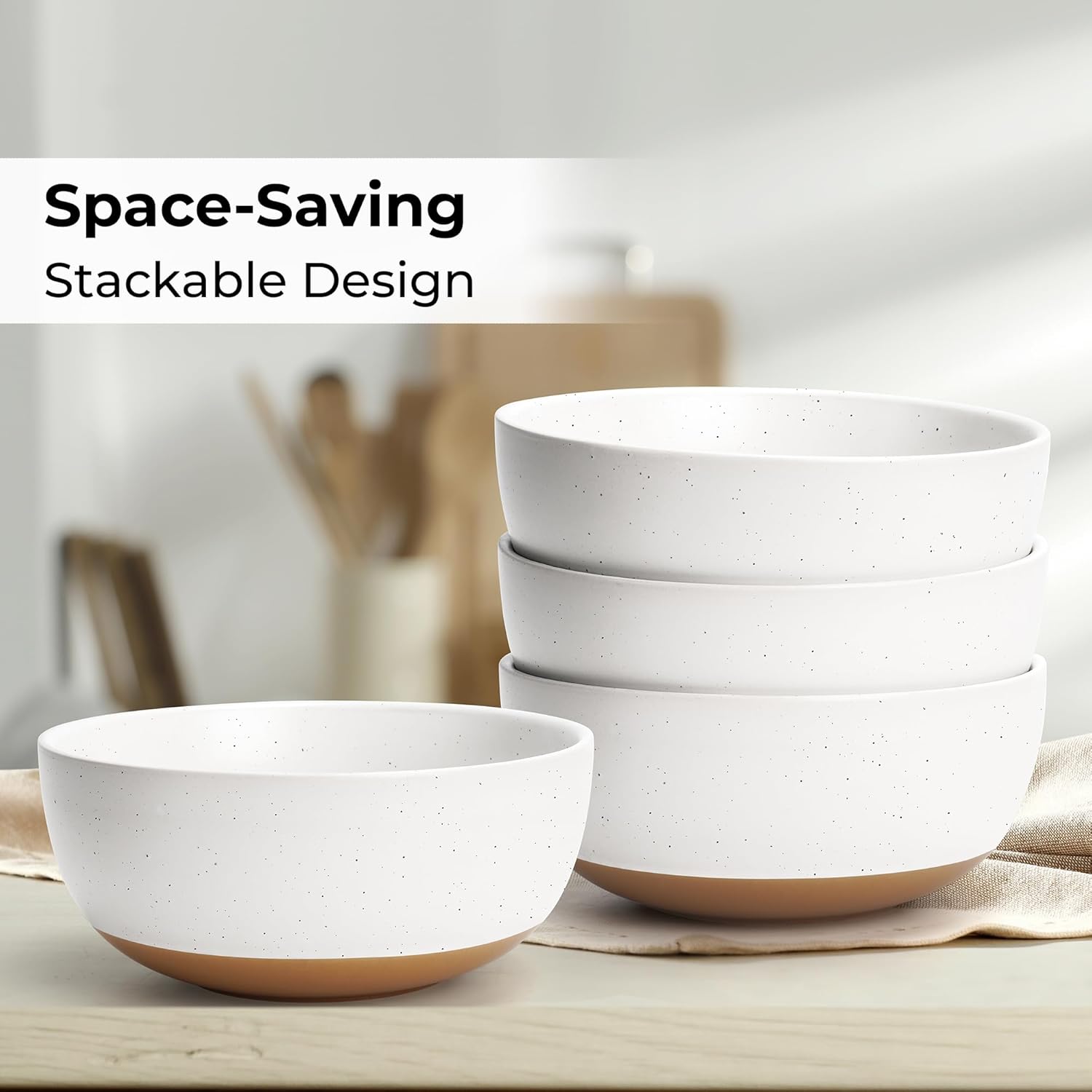 MIAMIO β Set of 4, 28 Ounce Ceramic Soup Bowls/Cereal Bowl Set for Salad, Oatmeal, Fruit, Rice β Dishwasher & Microwave Safe β Aura Collection (Creamy Cocoa, Bowls (4x))