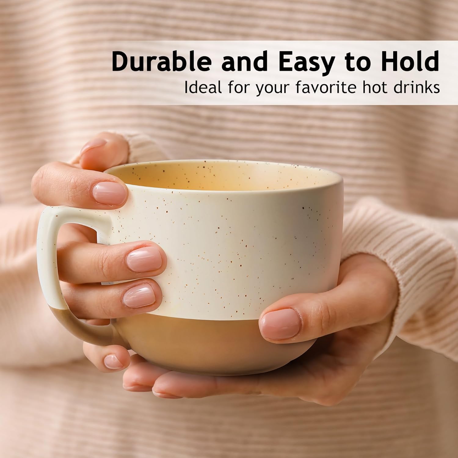 - 𝐃𝐈𝐒𝐇𝐖𝐀𝐒𝐇𝐄𝐑 𝐀𝐍𝐃 𝐌𝐈𝐂𝐑𝐎𝐖𝐀𝐕𝐄 𝐒𝐀𝐅𝐄 - Built with durable ceramic construction, these spacious coffee mugs set are crafted from high-quality and lead free ceramic. Our large coffee mug resist chips and cracks, and you can safely use the mug sets in the microwave and dishwasher.