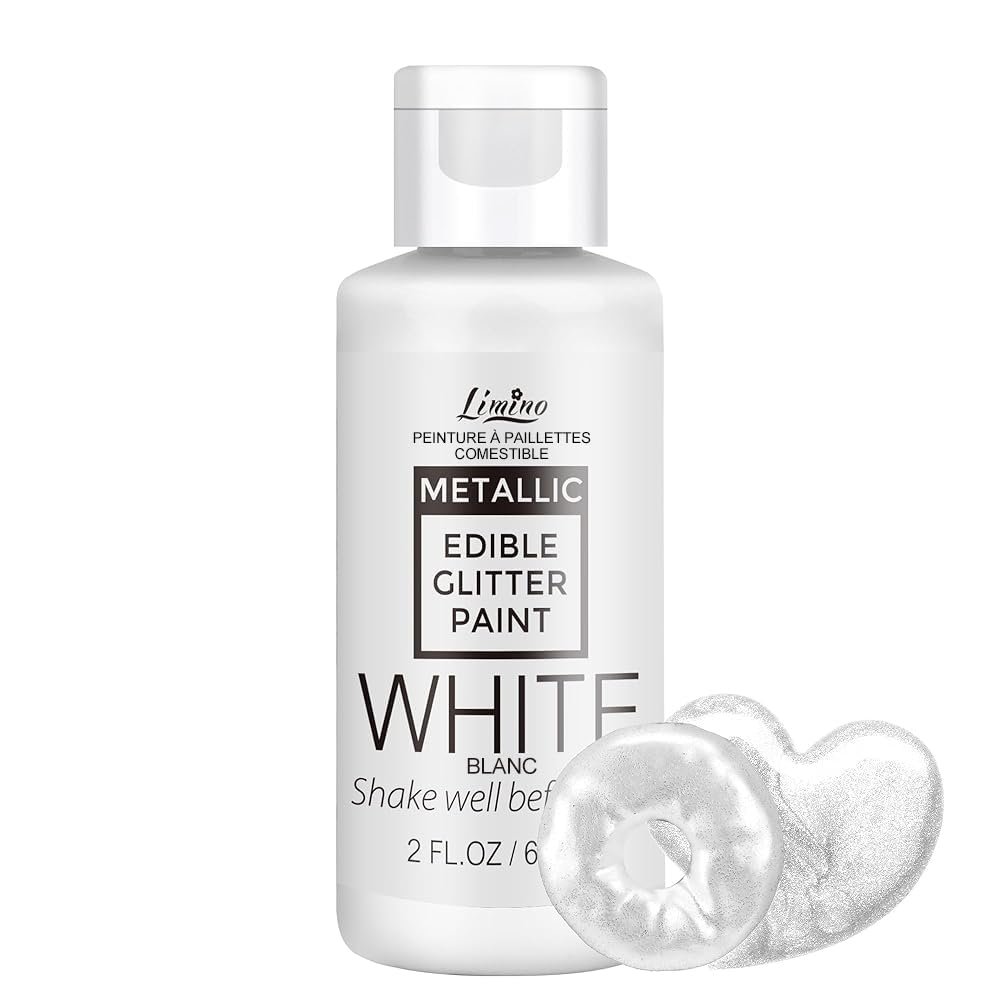 Edible Glitter Paint - 2 fl.oz Food Grade Metallic Glitter Cake Paint for Cake Decorating, Baking, Cupcakes - Shimmer Art Decorative Liquid Edible Paint Food Coloring for Fondant, Donuts (White)