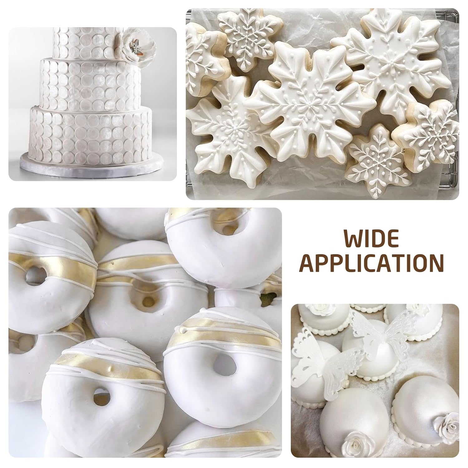- WIDE RANGE OF USES - This food grade cake paints can add a luxury shimmer to cakes decorating, cookies, macarons, chocolate, fondant, and other baked goods. Perfect for on various occasions such as Valentine's Day, anniversaries, birthdays, Easter Christmas, Halloween, and Thanksgiving Day. Discover an unlimited world of creative metallic color.