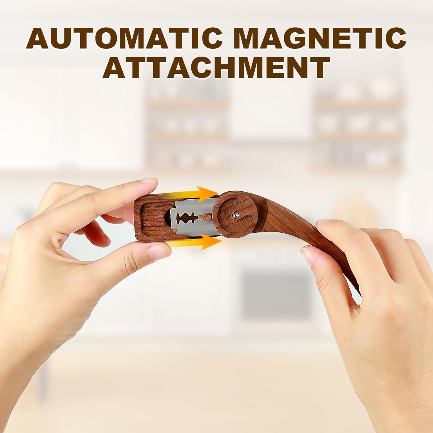 Innovative Magnetic Bread Lame Bread Scoring Tool,Bread Lame Cutter,Bread Scoring Knife for Bread Baking & Sourdough Baking,Bread Razor Tool with 5 Razor Blades-Black Walnut Wood