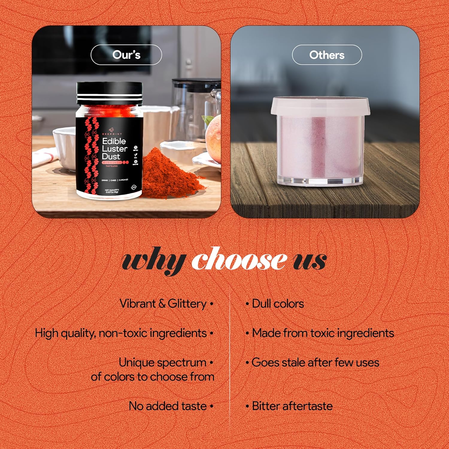 BeePoint Burgundy Edible Luster Dust 15g - Food Grade, Vibrant Color Shimmer Powdered Dust for Drinks, Cocktails, Cake Decorating, Baking, Chocolates, Candy, Sweets, & Cookies - Vegan & Gluten Free