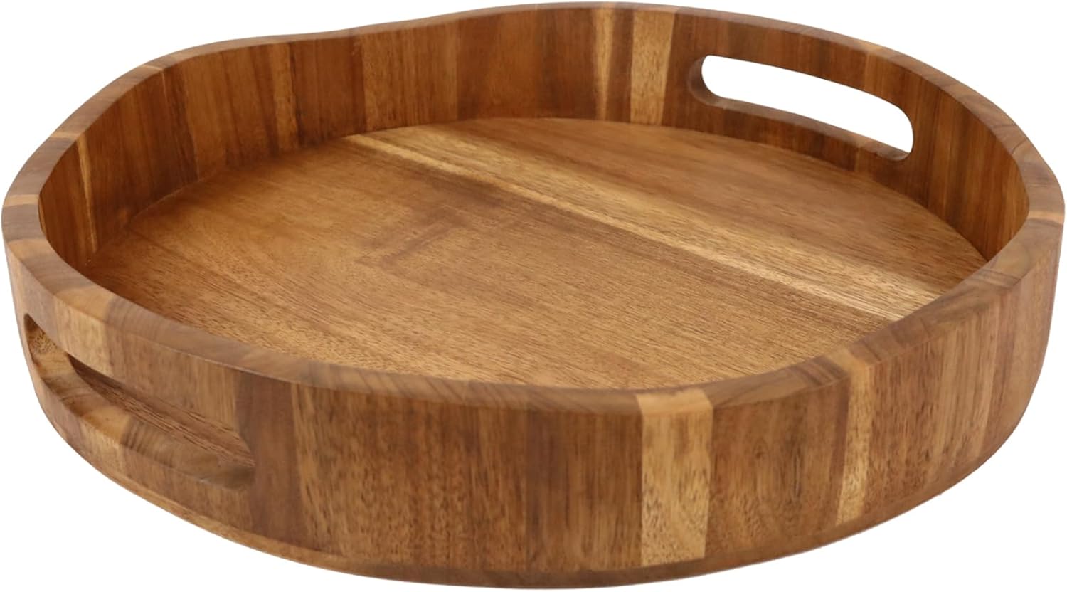 Acacia Wood Serving Tray with Handles, Round-12.6inch Perfect for Breakfast, Lunch, Dinner, Food Snacks Drinks for Coffee Table,Decorative Ottoman Tray for Living Room Kitchen, Bedroom