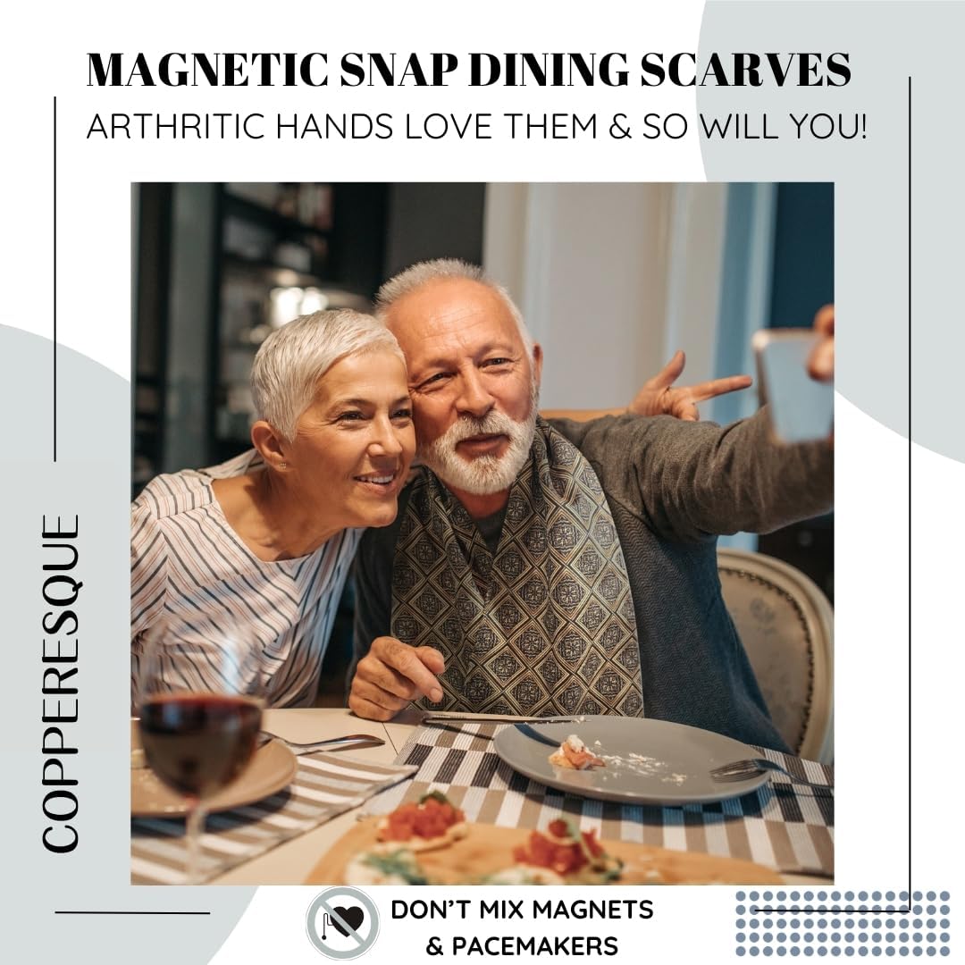 • 🎁 EASY TO WEAR Our uniquely designed bibs for adults solve the problems of size with a modified scarf design. Simply drape around your neck, the micro-suede texture will keep it in place. Provides independence to adults with arthritic hands, Parkinson’s Disease, hand tremors, and other medical conditions. A clothing protector which masquerades flawlessly as an accessory for any outfit.