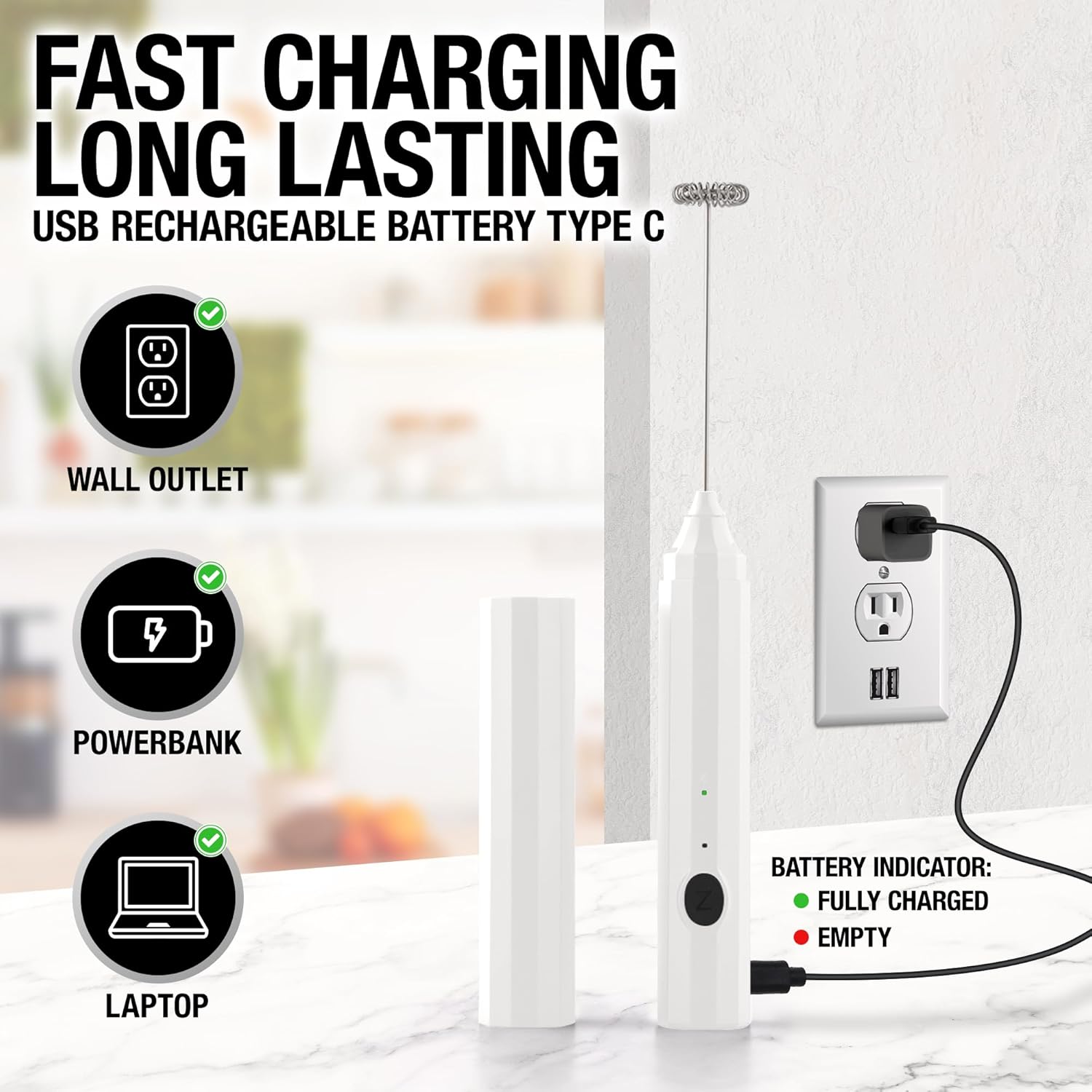 Zulay Kitchen FrothMate Powerful Milk Frother Portable & Compact Handheld Foam Maker Lattes, Cappuccinos (Blizzard White, Froth N Go)