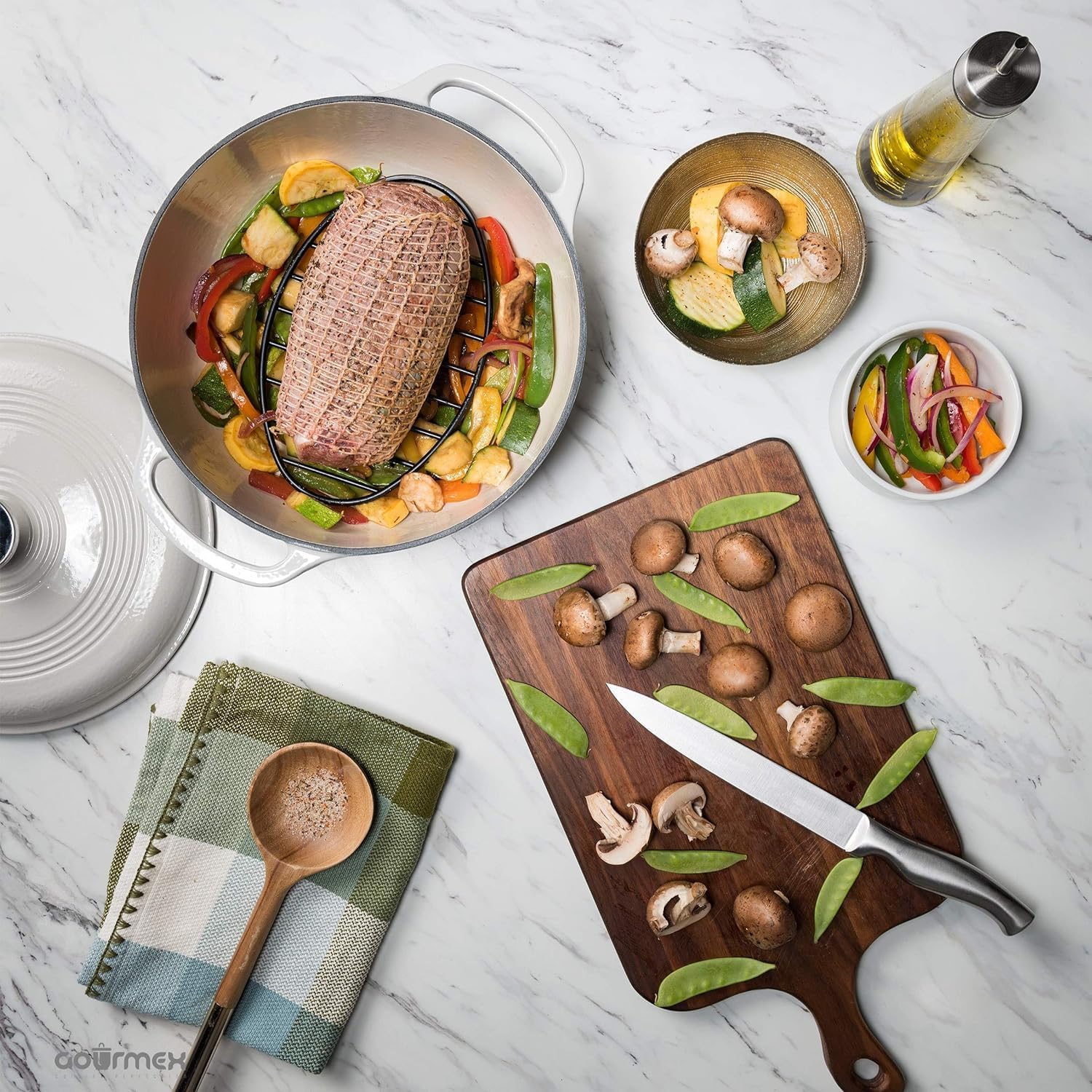- MEAT RACK FOR OVEN AND PAN- The open and clean design of the wires on the cooking racks for oven use, allows air to circulate around the food for fast, even roasting and easy cleaning. The rack allows the fat and liquids to drain while keeping the roast from sticking to the pot.
