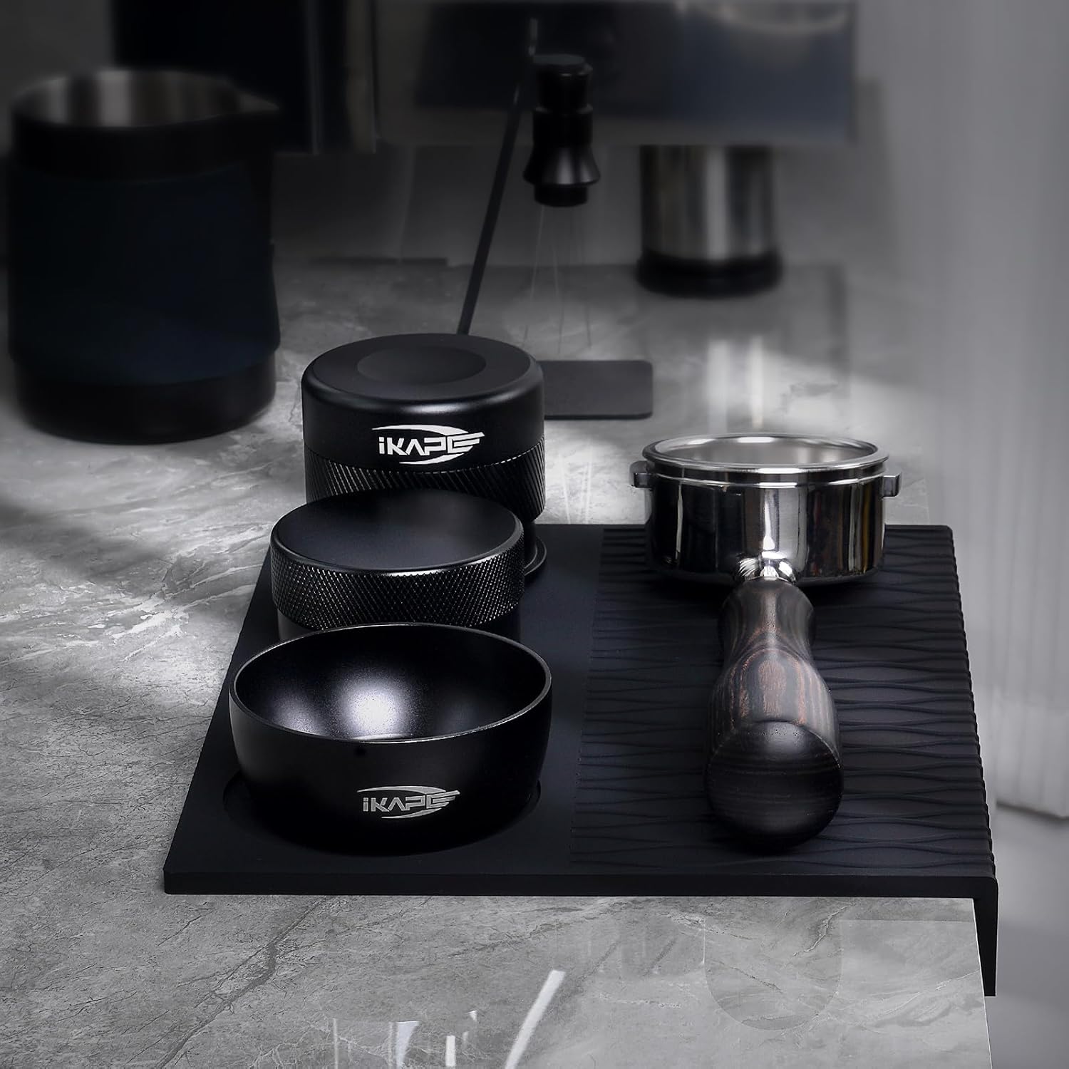 IKAPE Espresso Tamping Mat, Food Grade Silicone Coffee Tamper Mat, Portafilter Tamp Mat Espresso Accessory For Baristas, Waterproof Heat Resistant Tamping Pad Mat for Counter