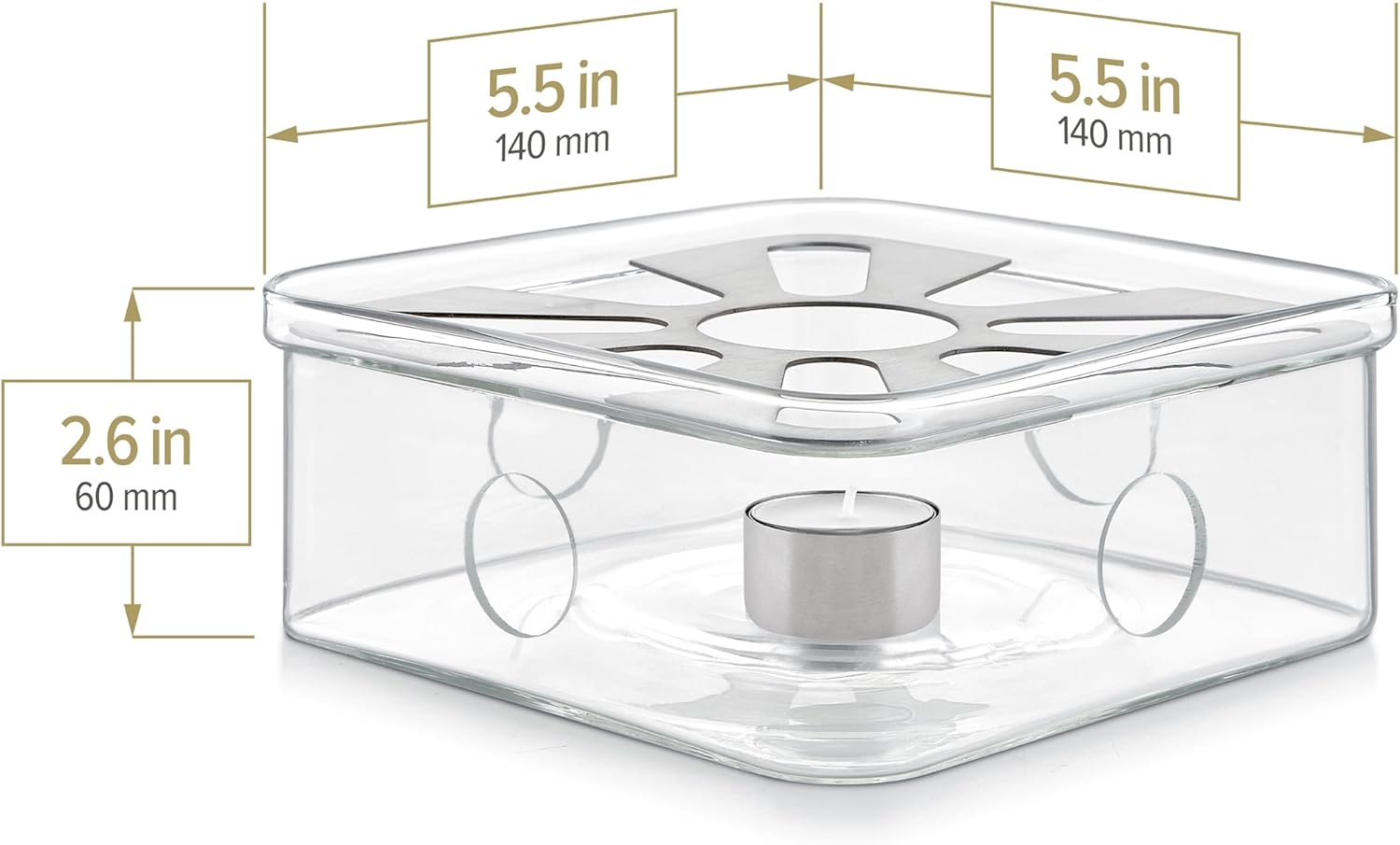 - Squared Shape Design: The unique squared shape not only adds a modern aesthetic to your tea set but also ensures even heat distribution, maintaining the perfect temperature for your tea without compromising on style. Surface measures 5.5 by 5.5 Inches.