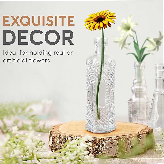- Vintage Vases for Timeless Elegance – Our 14-piece clear vases for centerpieces offer a variety of unique antique-inspired designs, and shapes to create a warm and inviting atmosphere. From slender amphora styles to wide robust designs, there's a bottle to suit every decor and project.