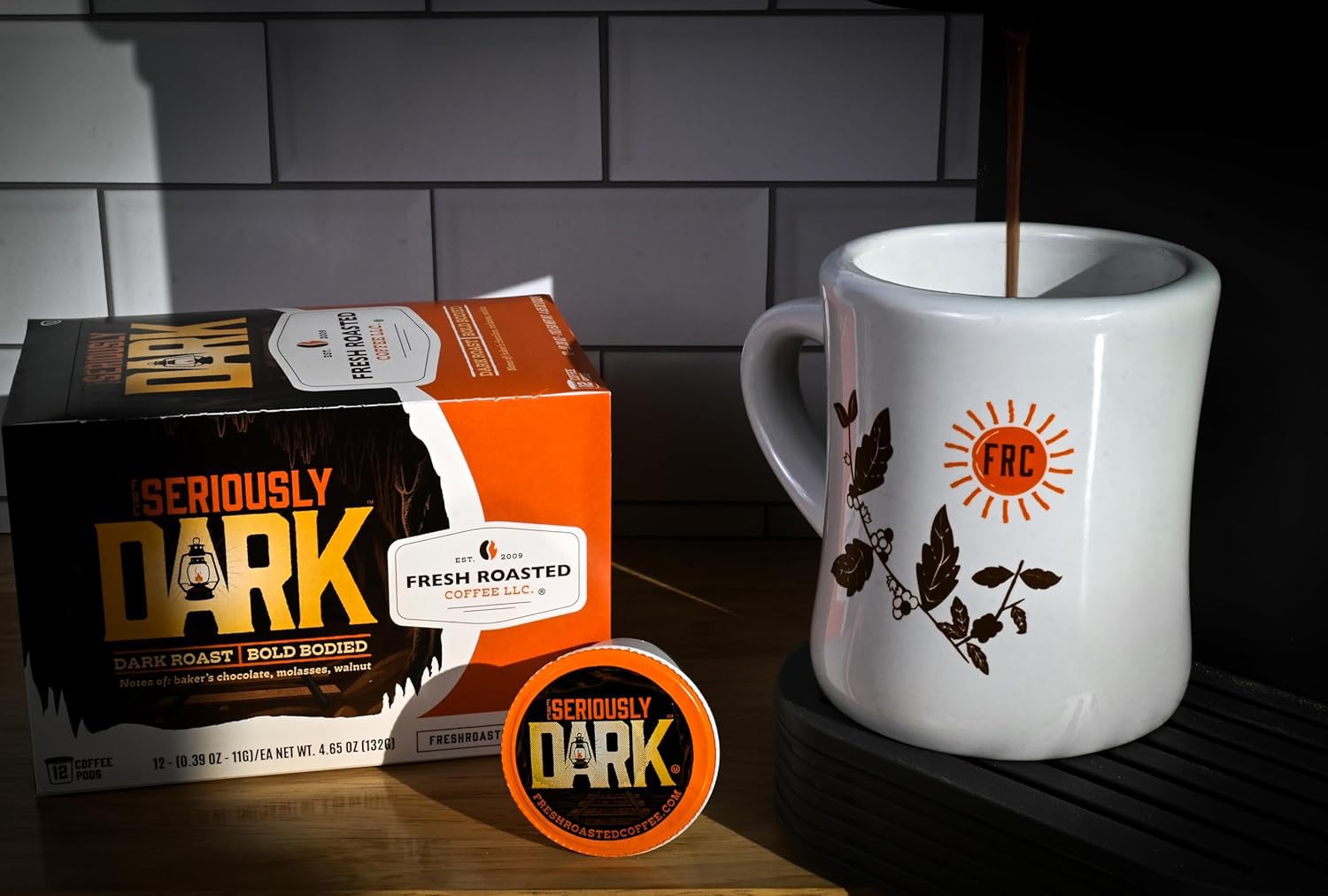 Fresh Roasted Coffee, Seriously Dark, Artisan Blend, Dark Roast, 24 Pods for K Cup Brewers