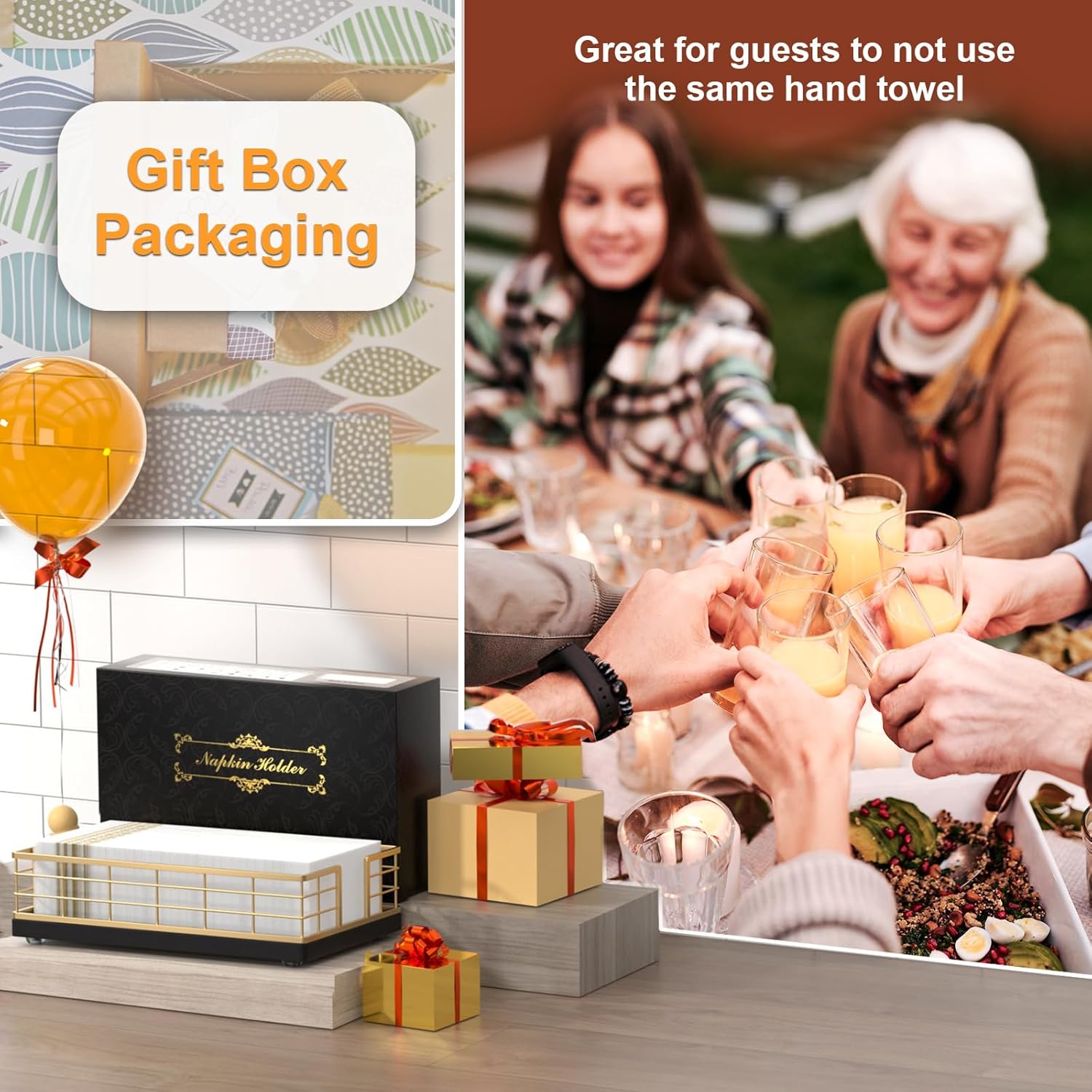 - Quite Versatile: This guest towel holder hold paper towels in the guest bathroom for hand drying; hold paper bath towels for your powder room, easy to retrieve towel when needed; It can also be used as a lunch napkin holder, looking very nice on the dining table